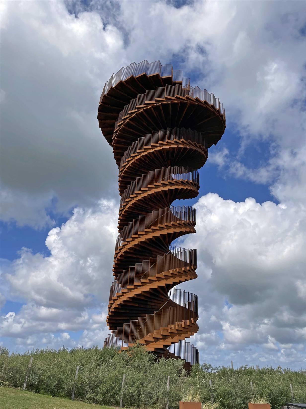 Auf dem höchsten Punkt stehen sechs Heisswassertanks, um die Stadt mit jeweils vier Millionen Liter warmen Wasser zu versorgen. Die rostbraune Hülle dieser Tanks wurden mit Aluminium verkleidet und den Raum zwischen den Tanks wurde mit einer Glaskuppel versehen. Die Dachterrasse bietet einen wunderbaren Ausblick. Anschliessend fuhren wir weiter zum Meer.
