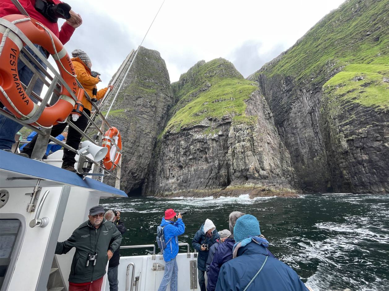 Nach einer ruhigen Nacht genossen wir das reichhaltige Morgenbuffet. Wir näherten uns bereits den Shetland Inseln. Hier hatten wir wieder kurz Telefonempfang. Es war ein schöner Ausblick an der steinigen aber bewachsenen Inseln vorbei zu fahren. Wir genossen dabei die Wärme auf dem Deck. Die Inseln beeindruckten mit ihren kahlen Felsen die schroff ins Meer abfielen. Die Zeit verging schnell.