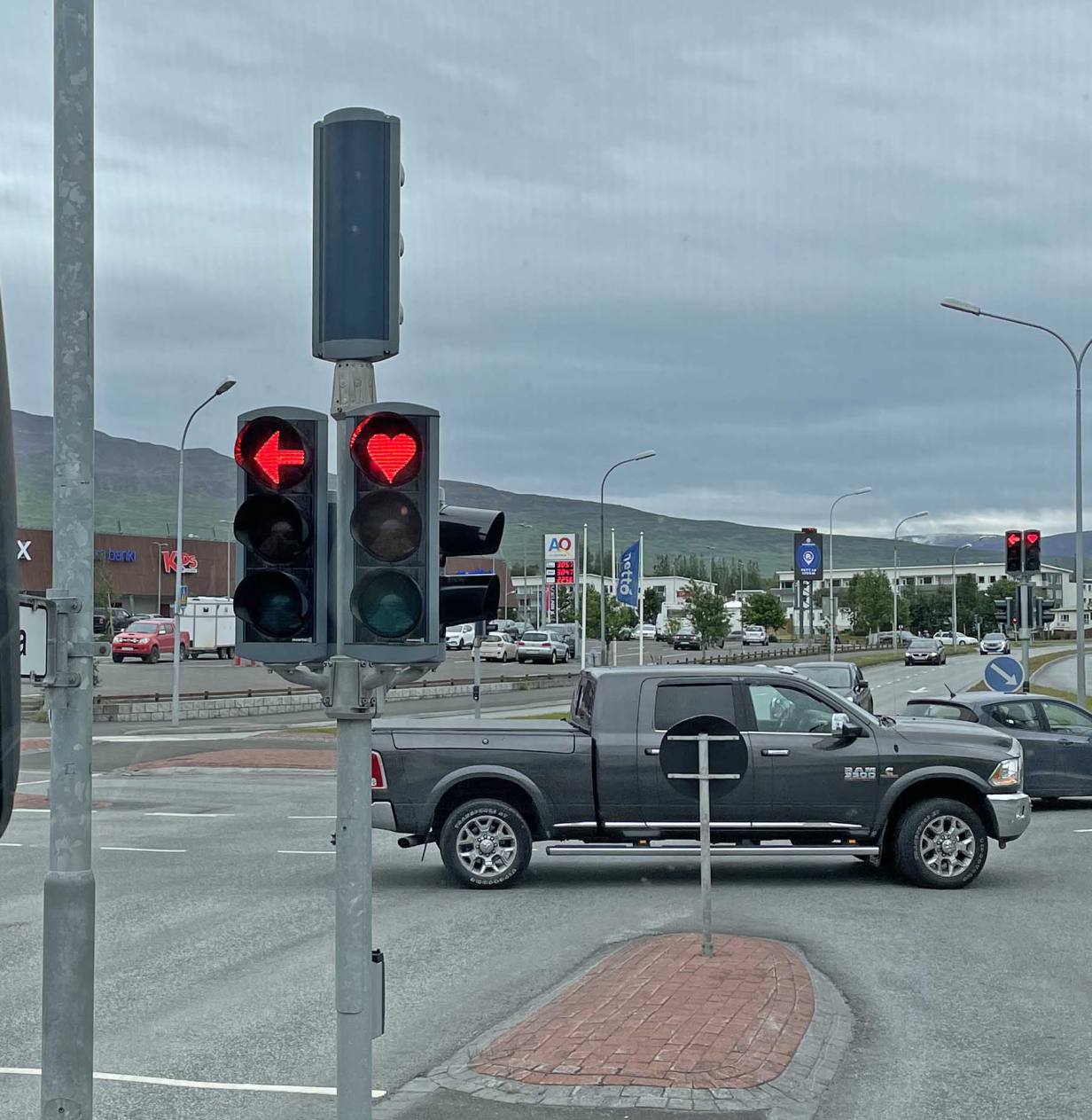 Bei dem Lichtsignal wartet man doch gerne. Wir haben noch getankt und sind die letzten Kilometer noch gefahren zu einem kleinen Dorf mit Campingplatz. Eine Gruppe macht von hier aus noch einen Ausflug zu den Walen. Ich habe bei der Ausfahrt noch kurz die Drohne steigen lassen.