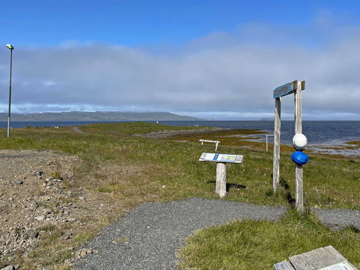 Weitere wenige Kilometer bereits der nächste Halt. Neben einem kleinen Hüttendorf wurde ein lustiger Weg geschaffen, auf dem wir allerlei Interessantes über Elfen und Trolle erfahren. Der Weg ist mit Schautafeln versehen die auf lustige Art und Weise die Geschichte erzählen. Gleichzeitig sind auch verschiedene Objekte verstreut, mit denen man lustige Fotos schiessen kann. Der Pot ist ein kleines Bad mit heissem Wasser. Diese sieht man überall. Sie werden mit heissem Wasser aus dem Boden gespeist. Rund um den Weg sind auch noch ein Restaurant und Thermalbäder zum geniessen bereit.