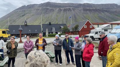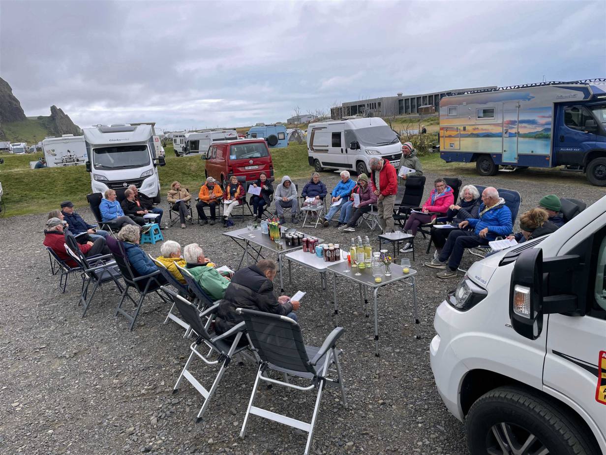 Nach dem Essen hatten wir noch ein Briefing für den nächsten Tag und gleichzeitig die Verabschiedung. Ein Ehepaar reist noch weitere Wochen in Island umher und hat sich von uns verabschiedet. Wir haben in den letzten Tagen noch als Dank für die perfekte Führung gesammelt für das Leiterpaar Eva und Lukas. In einem kleinen Buch hat jeder Teilnehmer seine eigenen Eindrücke niedergeschrieben, sodass ein Gesamteindruck für die Leiter entstanden ist. Am Schluss gab es noch ein Gruppenphoto.