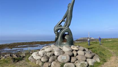 Wir haben in der Stadt noch gut Mittaggegessen. Auch hier konnte ich wieder ein Fischmenü mit Krabben und Salat geniessen. Das ist Urlaub. Wir spazierten dann Richtung Wohnmobil und nahmen die letzten 40 km für heute unter die Räder. Unser Ziel war Esbjerg die siebtgrösste Stadt Dänemarks. Wir sind hier nur zum Uebernachten. Uns fehlt ein Tag wegen des Unwetters. Morgen werden wir noch die berühmten weissen Männer. Diese wurden 1995 gebaut.