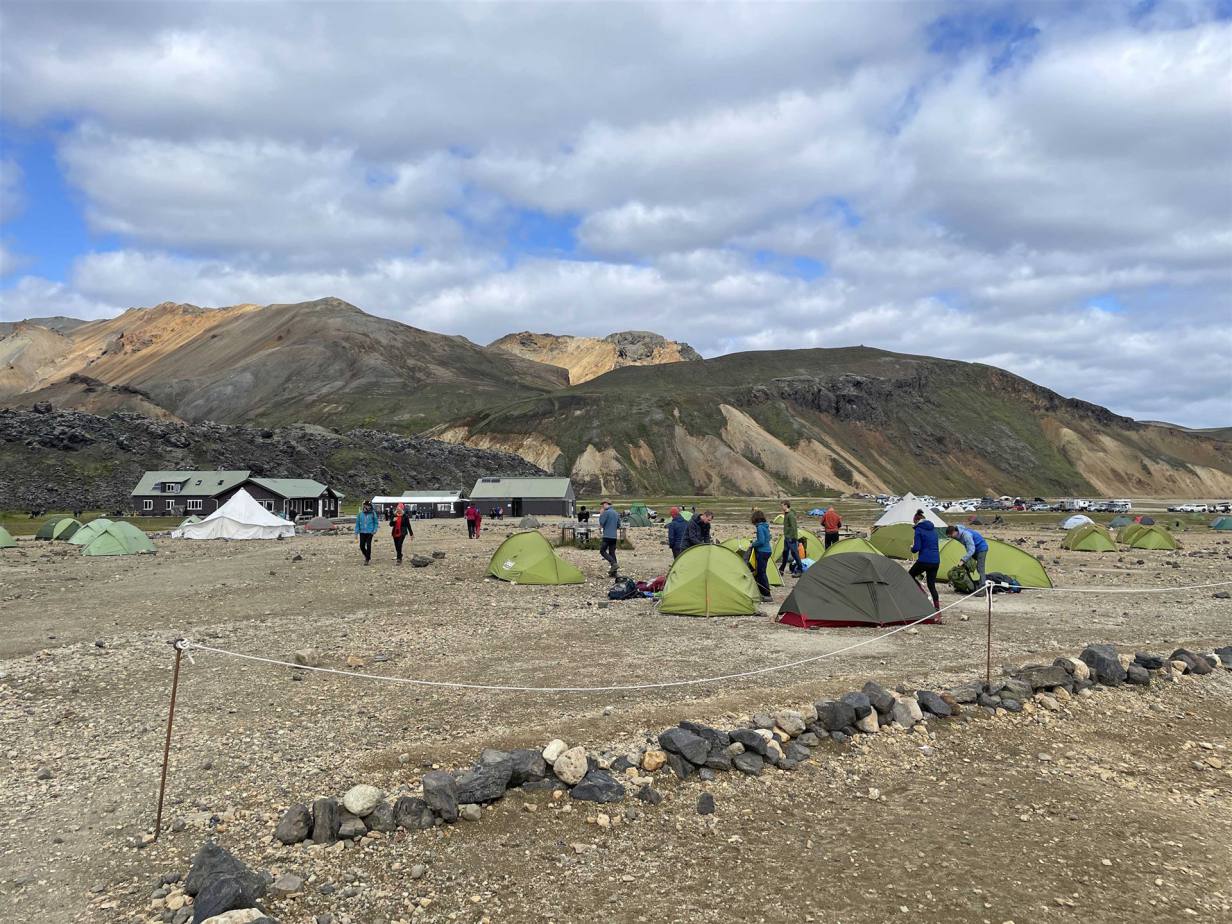 Das Fjallabak-Natureservat ist berühmt für seine wilden und schroffen Landschaften mit farbenprächtigen Bergen und tiefen Tälern. Der Gletscher-gekrönte Vulkan, Torfajökull, formte diese Gegend durch seine zahlreichen Eruptionen und die hohe geothermische Aktivität, die noch heute in dieser Region zu finden ist. Diese Region ist die größte Rhyolith-Region Islands und zweitgrößtes Geothermalgebiet nach Grímsvötn, welches sich tief im mächtigen Vatnajökull-Gletscher befindet. Die heißen Quellen und Geothermalbäder in Landmannalaugar sind nur eines der vielen Zeichen der hohen Geothermalaktivität dieser Region. Die guten Wanderer machten eine zweistünde Tour in den Bergen. Diese stellte sich als recht anspruchsvoll dar. Danke Hilfe von drei Teilnehmern konnten die Leute, die sich überschätzt hatten glücklich zurück begleitet werden.