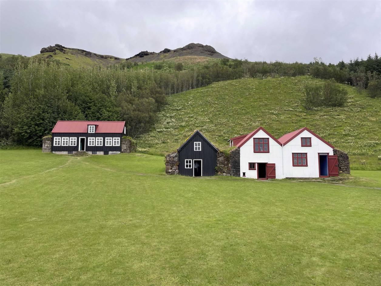 Unser letzter Halt war die Ortschaft Glaumbaer. Das hat nichts mit Tieren zu tun. Es ist ein weiteres Museum von Torfbauten. Auf einer gossen Anlage mit Sicht ins Tal kann man die Häuser besuchen. Zum Museumsteil gehört auch noch ein zweistöckiges Wohnhaus, welches um 1870 gebaut wurde, in dem sich drei komplett eingerichtete Zimmer aus dieser Zeit sowie ein Café befinden. Alte Haushaltsgegenstände sind auch in zwei weiteren Räumen ausgestellt. Wir konnten es nicht lassen kurz einzukehren für einen Kaffee und für mich Kuchen.