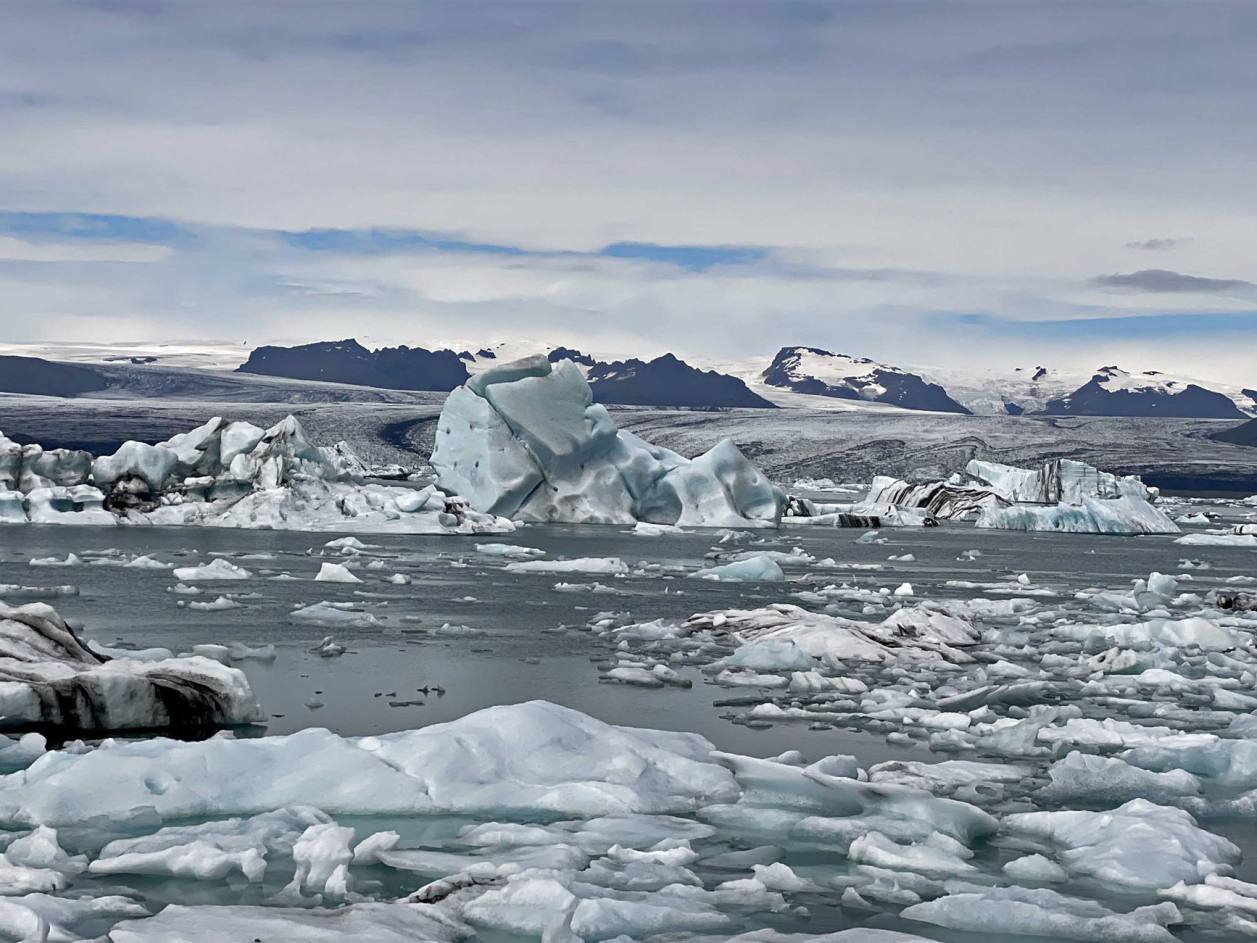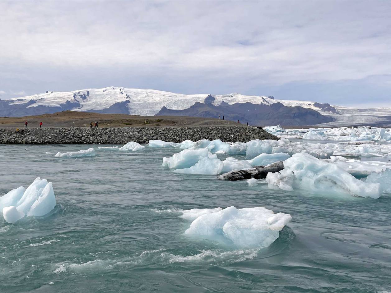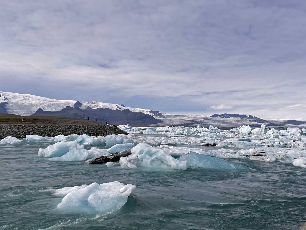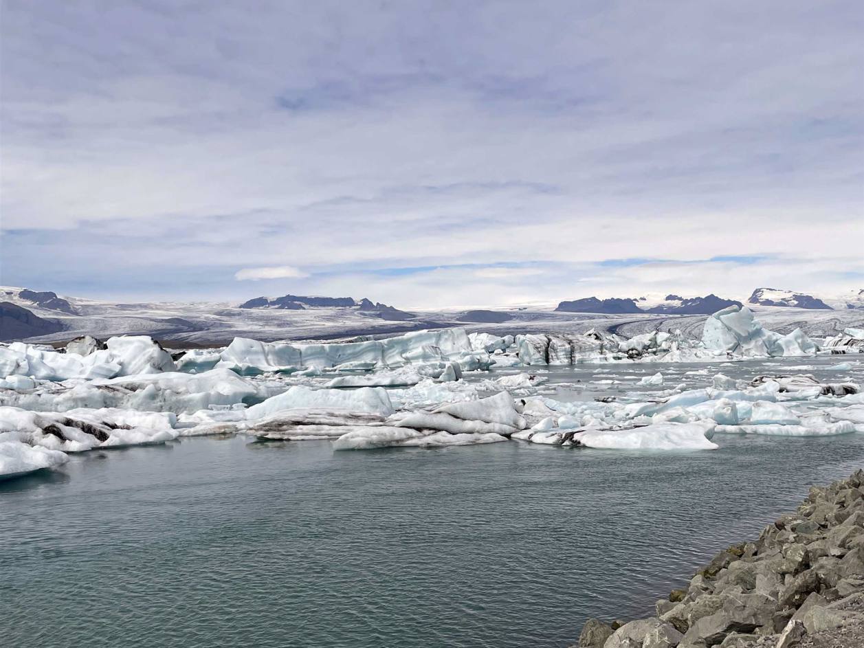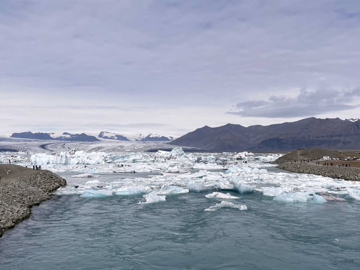 Wir fuhren weiter und immer wieder begleiteten uns die Ausläufer des Gletschers. Wo er sichtbar war sind auch gleich grosse Flüsse die ins Meer fliessen. Der nächste Halt war beim Fjallsarlon. Ich denke, ein Stopp hier lohnt sich wirklich, da man näher am Gletscher ist, mit interessanten Bergen im Hintergrund und umgeben von deutlich weniger Touristen (obwohl es immer mehr werden). Man kann einen ruhigen Moment genießen. Es atmet Frieden und Ruhe. Es ist nicht immer mit Eisbergen gefüllt, aber wenn es zu stoppen sind sie manchmal am Ufer und epische Bilder landen!