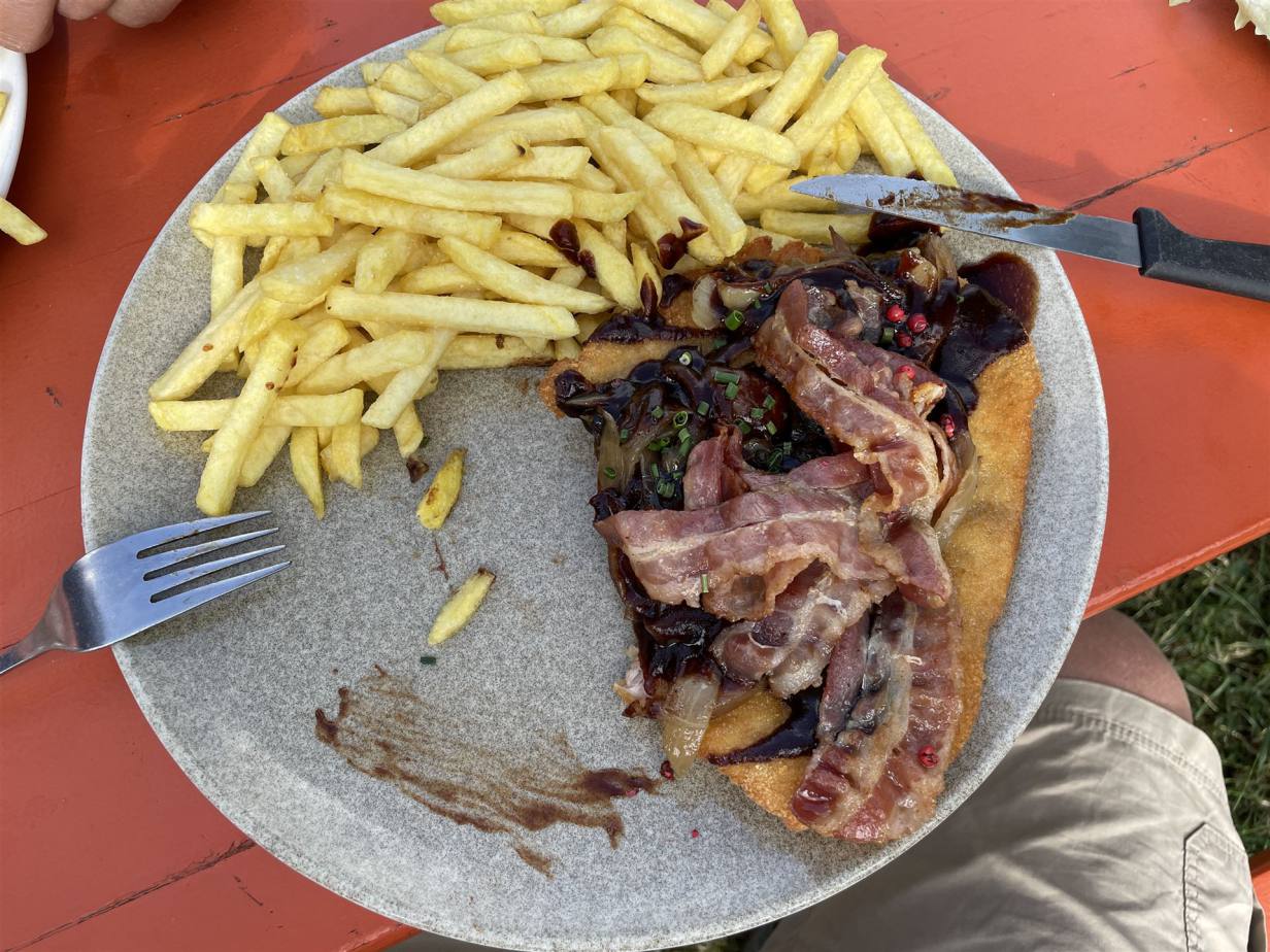 Heute war es soweit am Morgen um 09.00 Uhr bin ich nach Oberhasli gefahren und habe Hans abgeholt. Nach der Verstauung von allem Material und der Verabschiedung von Freunden und Bekannten und natürlich Esther fuhren wir los. So wenig Verkehr wie heute habe ich schon lange nicht mehr gesehen. In Bargen Tempomat rein und vor der Ausfahrt nach Hammelburg wieder raus. So warten wir nach einer kleinen Pause um 15.00 Uhr an unserem Ziel auf dem schön gelegenen Stellplatz. Es hat wenig andere Wohnmobile. Nun ging das organisieren los. Alles auspacken und verstauen. Ich habe für Hans einige Schränke geräumt, sodass er nun seine Sachen einräumen konnte. Darnach kurz an der Sonne Chillen. Unterhalb des Platzes der terrassiert ist, hat es ein Ausflugsrestaurant. Rund herum ist ein kleiner Zoo mit diversen Tieren. Der Biergarten liegt wunderschön unter den Bäumen. Wir bestellten zwei Texassteaks und genossen das erste frische kalte Bier. Der erste Tag verlief schon mal ordentlich.