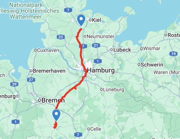 Heute war Fahrtag. Am Morgen fuhren wir zuerst in die Stadt und wanderten zu einem Sukulentenpark. Es war nicht der Hit und wir zogen zur Innenstadt Es war Markttag und das gab uns die Gelegenheit frisches Obst und Gemüse einzukaufen. Dann machten wir uns auf den Weg gegen Süden. Wir durchquerten Hamburg was überraschenderweise recht gut und flüssig ging. Na ja es hatte zwar gefühlte 100 Ampeln aber die Strassen sind meistens mindestens zwei Spurig. Soi war nach rund einer Stunde dann wieder freie Fahrt. Wir fuhren nach Nienburg und wollten an der Weser den Stellplatz zur Nachtruhe benutzen. Als wir ankamen war alles besetzt. So gingen wir direkt neben dem Platz auf einen Parkplatz von verschiedenen Einkaufsgeschäften. Zu Fuss überquerten wir dann die Weser und gingen um fünf Uhr Mittagesssen. Anschliessend fuhren wir einen Campingplatz ebenfalls an der Weser an wo wir nun stehen.