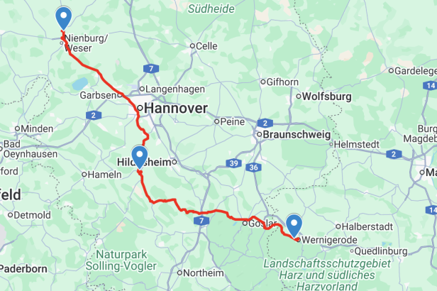 Ein grauer Morgen verwandelte sich dann gegen Mittag doch noch in ein strahlendes Blau. Wir hatten auf den Landstrassen viel Morgenverkehr, desshalb entschlossen wir doch das Stück Autobahn zu nehmen. Das war ein weiser Entschluss. Gegen 10.30 Uhr trafen wir beim Wohnmobilhändler Ziesener ein. Ich hatte noch zwei Kleinigkeiten zum Reparieren. Gleichzeitig wollte ich nochmals meine Konfiguration der Sitzpolster kontrollieren. Gegen Mittag ging es weiter direkt nach Wernigerode.
