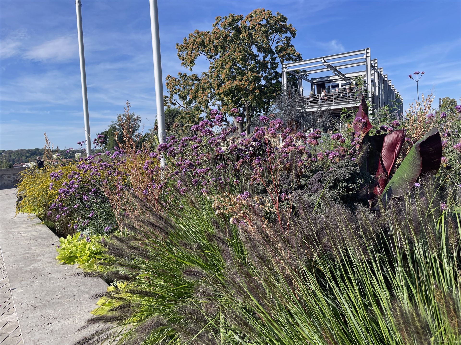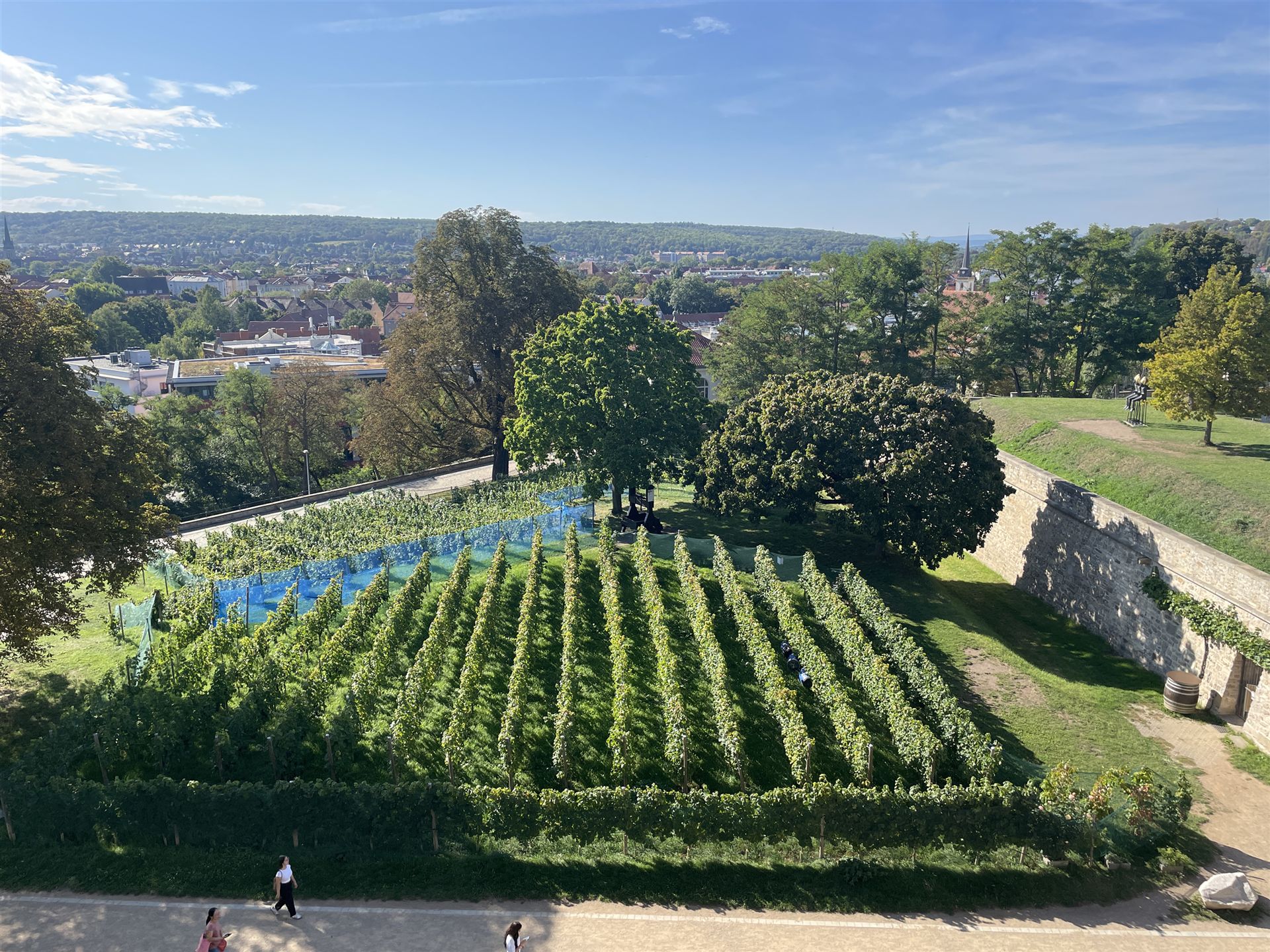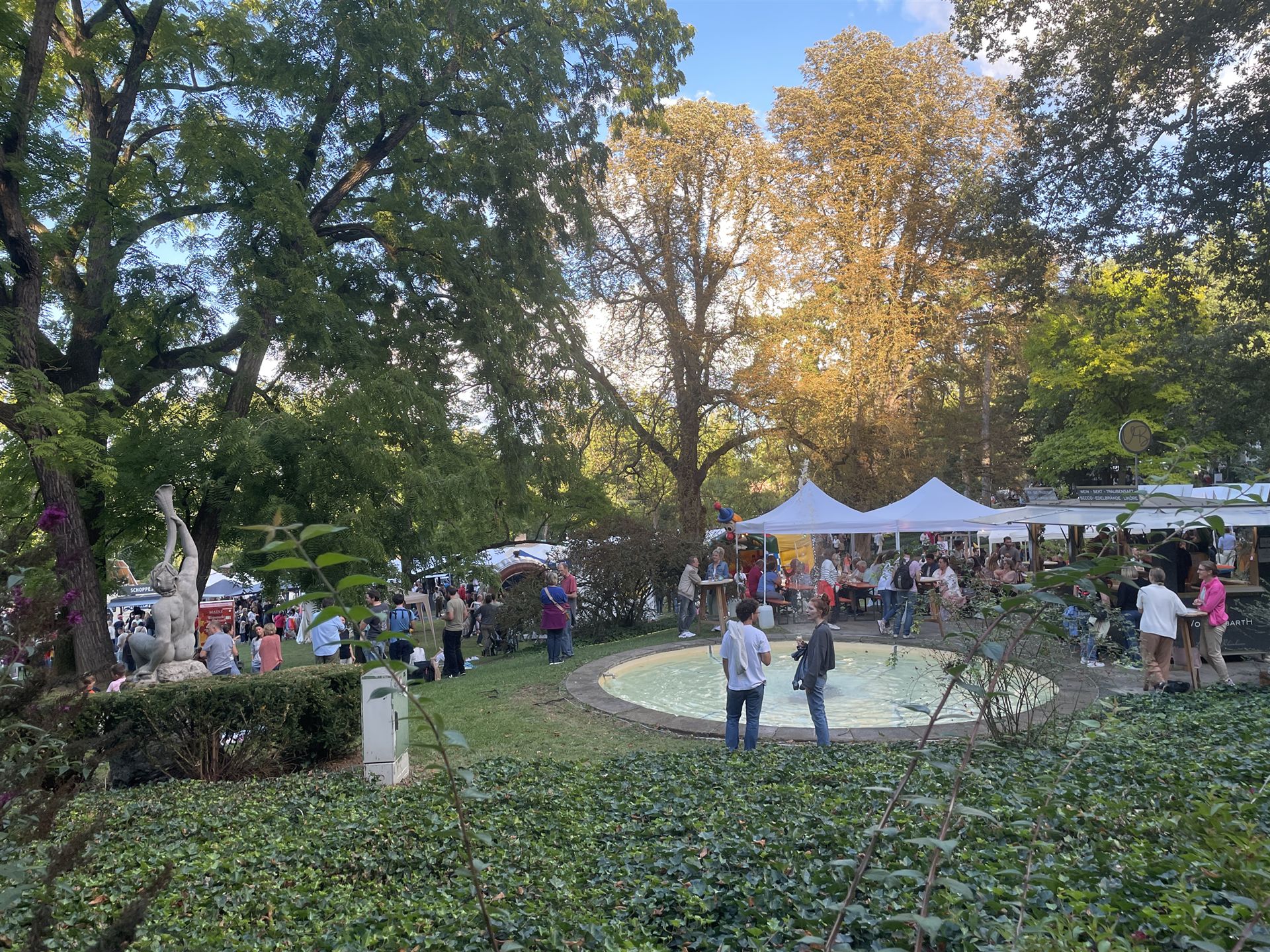 Nachdem wir das Wohnmobil noch fertig eingeräumt hatten, machten wir uns auf den Weg in die Stadt. Idealerweise war die Busstation direkt vor der Haustüre. So waren wir in kurzer Zeit am Stadtpark wo ein grosses Weinfest stattfand. Der Stadtpark liegt am Stadtrand in hügeligem Gelände und hat neben grossen alten Bäumen wunderschöne Blumenrabatten. Wir waren nur kurz da. Die grossen Besuchermassen waren nicht unser Ding und wir verzogen uns in die Altstadt. Ausserdem war es ein Weinfest wo die Winzer ihren Wein ausschenkten. Man konnte nicht sitzen und für das Essen musste man lange anstehen.