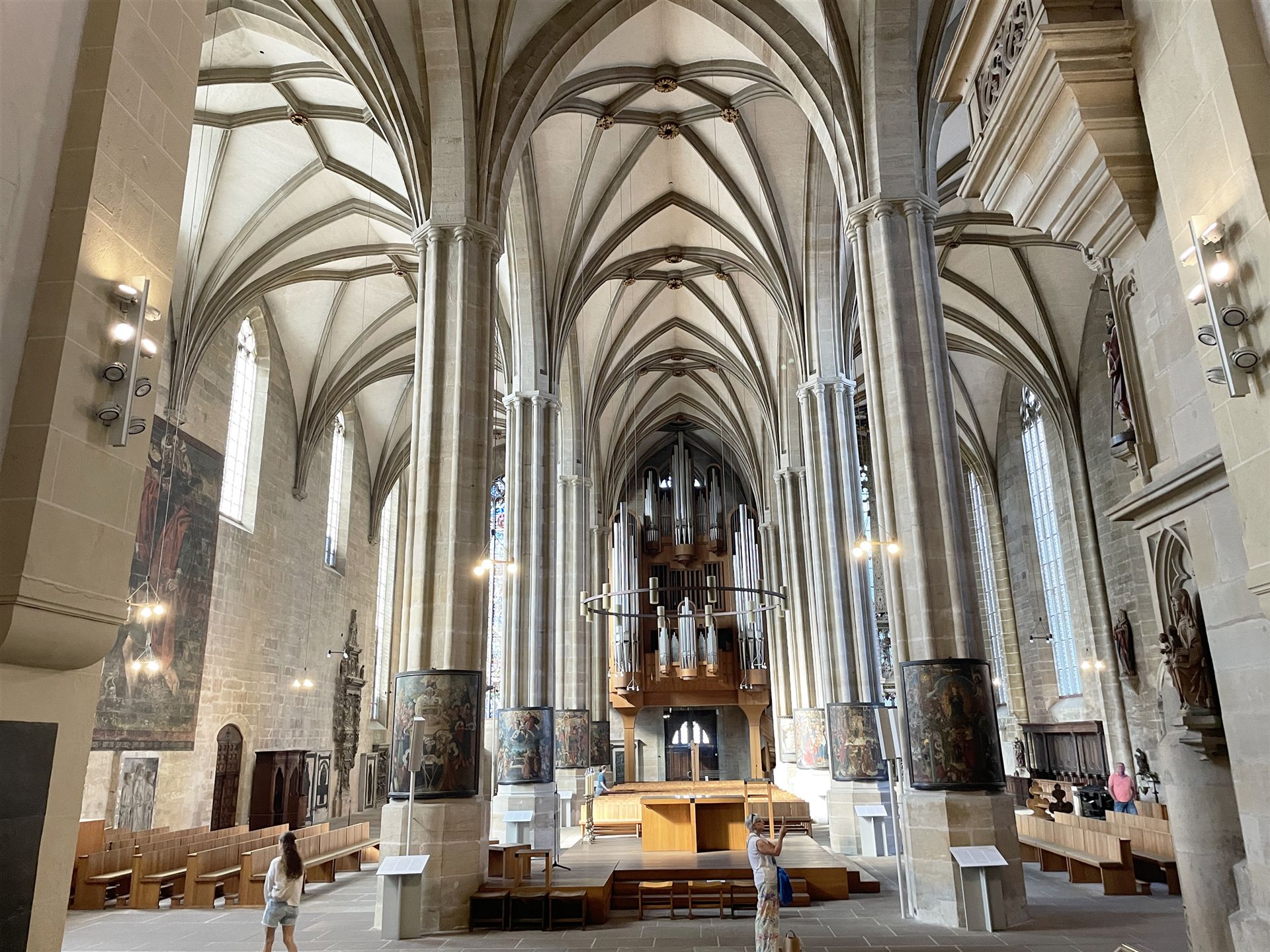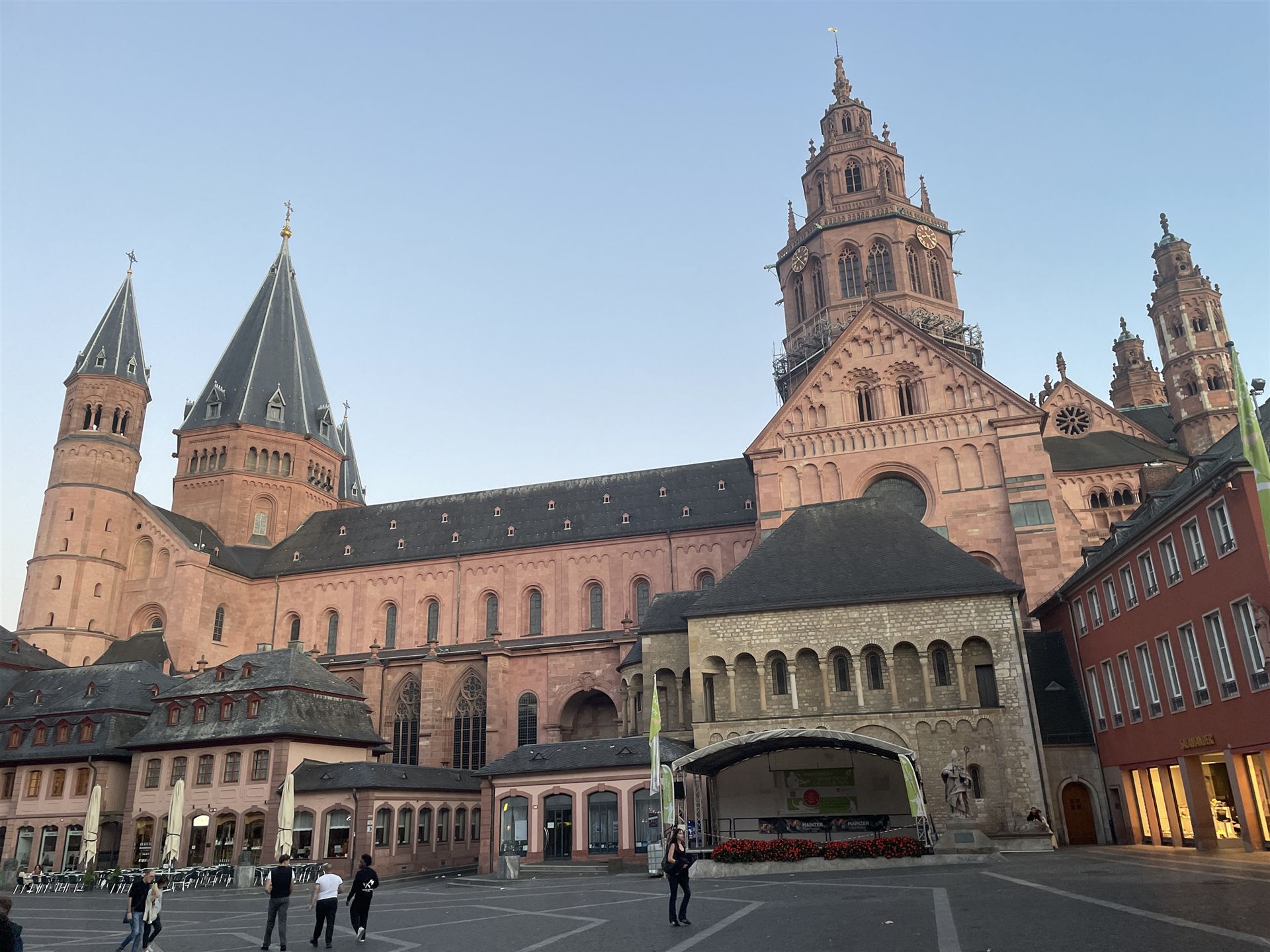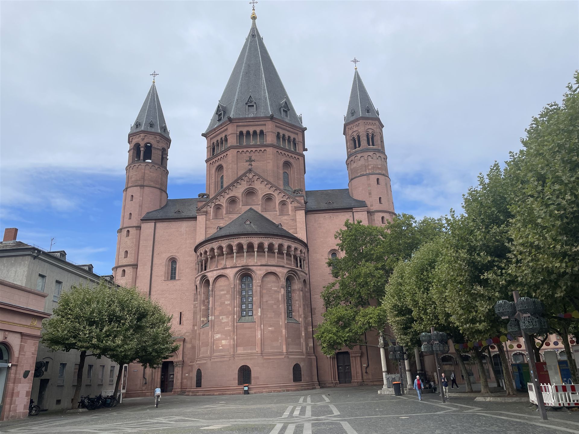 Am Morgen lösten nochmals ein Busticket in die Stadt Mainz. Mainz ist eine deutsche Stadt am Rhein. Es ist für seine Altstadt mit ihren Fachwerkhäusern und mittelalterlichen Marktplätzen bekannt. In der Stadtmitte befindet sich der im Renaissancestil gehaltene Marktbrunnen mit seinen roten Pfeilern. Unweit davon steht der romanische Mainzer Dom mit seinem tiefroten Sandstein und dem markanten achteckigen Turm. Dieser war dann auch unserer morgendlicher Besuch. Es war Sonntag und Gottesdienst. Man konnte aber den Dom trotzdem besuchen. Die Kirche ist so gross, dass man links davon vorbei gehen konnte ohne zu Stören. Im Innern sieht man erst die gewaltige Struktur des Domes. Es ist aber sehr Dunkel.