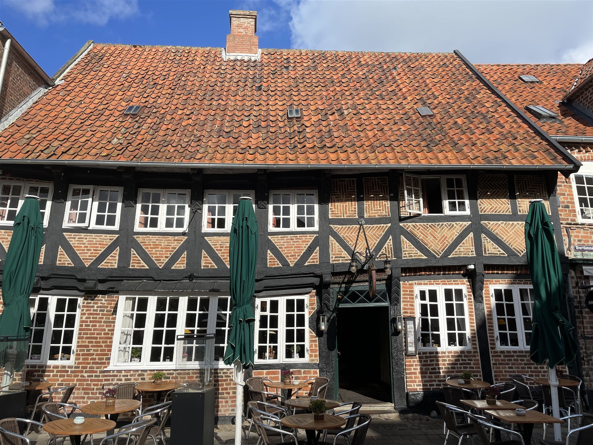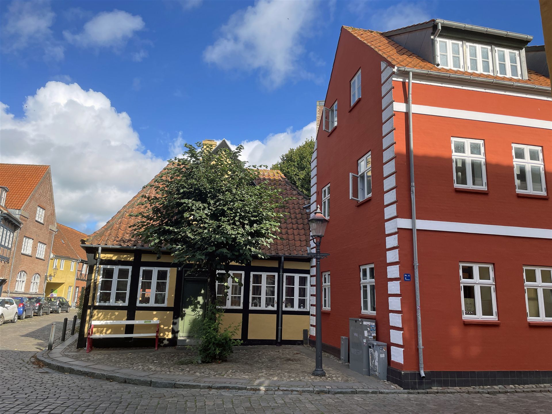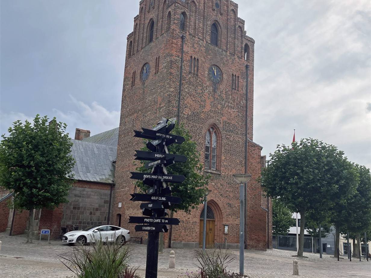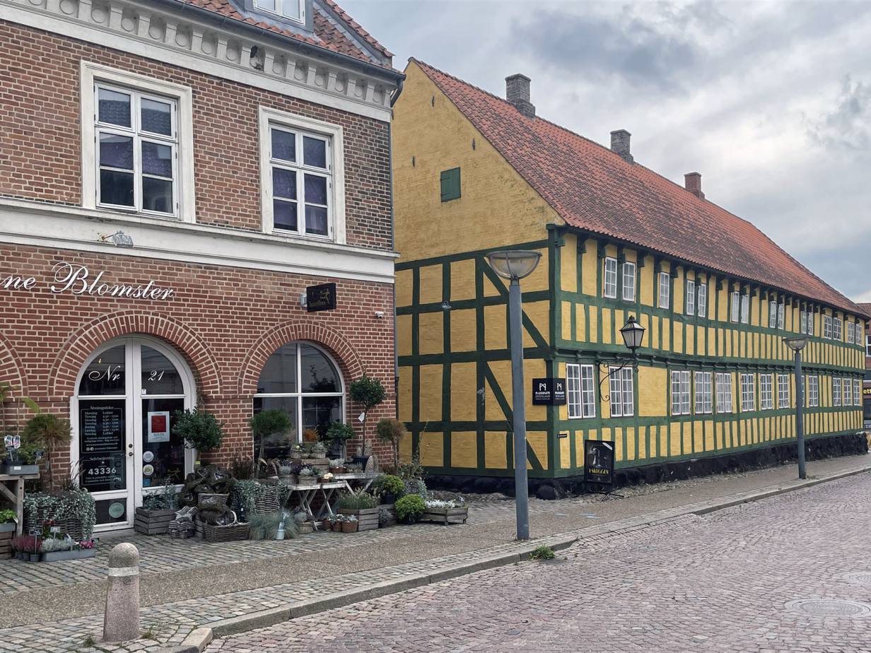 Eine ganz andere Atmosphäre zeigte sich in der Hafenstadt Ebeltoft. Wir konnten ganz nahe der Altstadt parkieren. In einem Restaurant am Hafen genossen wir seit lange wieder einmal guten Fisch. Ich liess mich aber zu einem Steack 250 g hinreisen. Voll genährt machten wir uns auf die Stadtbesichtigung. Der alte Stadtteil in Ebeltoft ist voller Nostalgie. Cafés, Restaurants und idyllische Geschäfte liegen malerisch in den engen mittelalterlichen Kopfsteinpflaster-Straßen zwischen Fachwerk-Häusern und Stockrosen. Die Stadt ist für ihr dynamisches Geschäftsleben mit lockenden Angeboten für jedermann bekannt. Es ist ein quirliger Ort wo sich die Touristen treffen und flanieren.