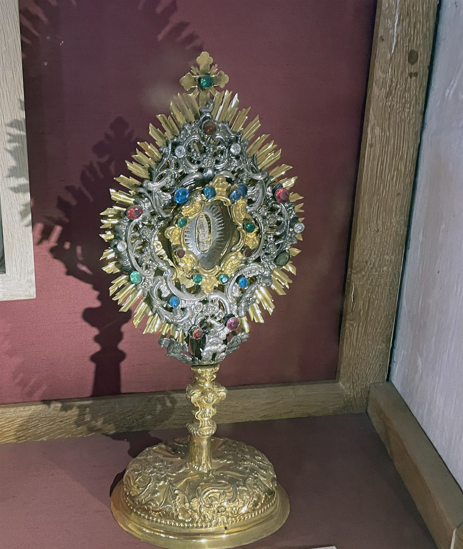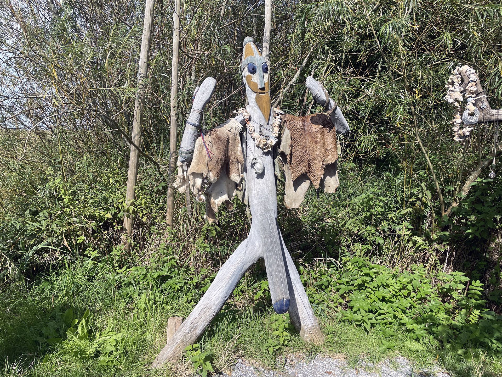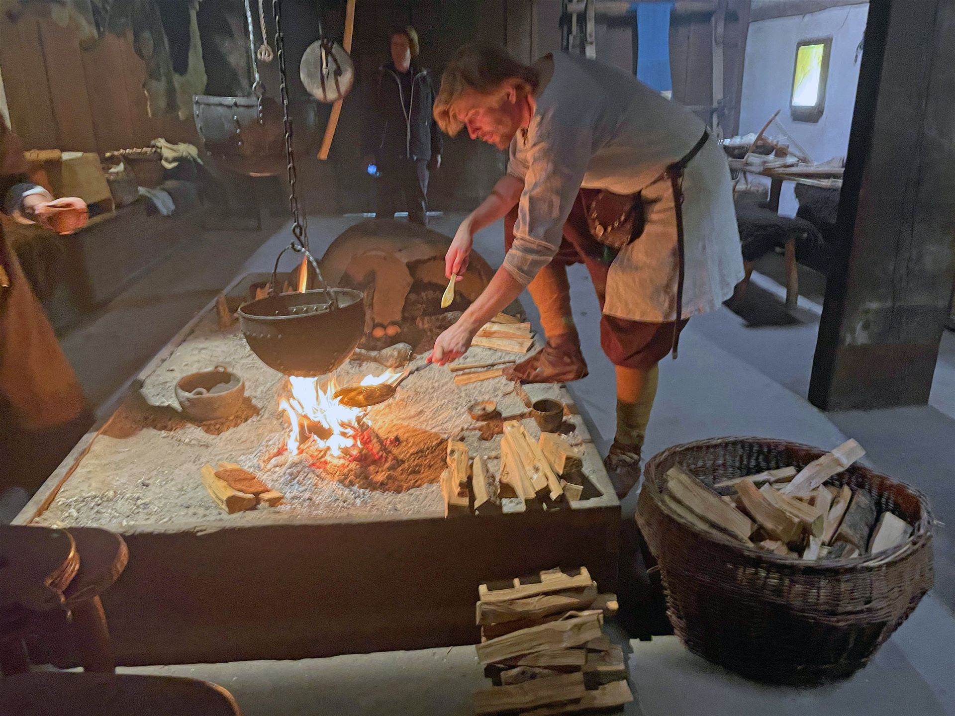 Die Religion war ein wichtiger Teil des Lebens in der Wikingerzeit. Am Wasser unten gibt es neben einem WC (Ring zum Sitzen und alles geht ins Wasser) einen Opferhein, wo die nordischen Götter Odin, Freyr, Freja und Thor stehen. Vor ihnen sind die Opfergaben von Vikinger.