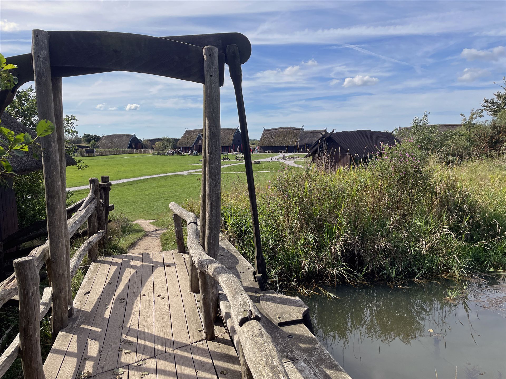 Alte Wikingerhäuser, eine Holzkirche, Mühlen, ein echtes Wikingerschiff: Jede Ecke im Bork Havn Wikingermuseum erzählt seine eigene, spannende Geschichte. Die hiesigen Gebäude sind teilweise exakte Nachbildungen von Häusern, die in Mitteljütland ausgegraben wurden. Zum Beispiel wurde das große Wikingerhaus mit Stall im Jahr 1995 in der Nähe von Tarm, unweit des Wikingermuseums, entdeckt.