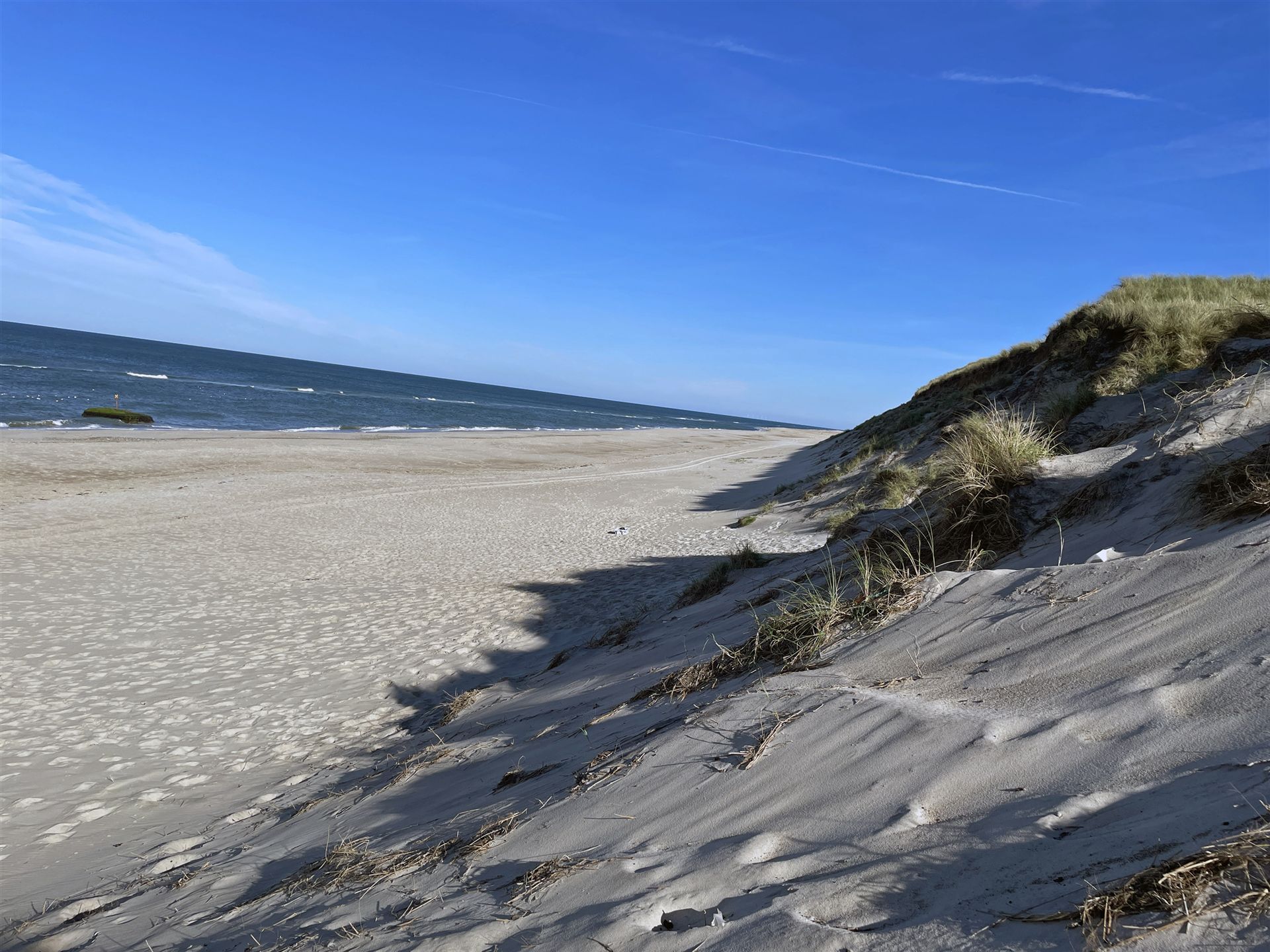 Die Strecke von Ebsjerg nach Hvidbjerg Strand war sehr schön. Teilweise dem Meer entlang, dann wieder Heide. Ich hatte einen Stellplatz ausgesucht, wir landeten dann aber schlussendlich auf einem riesigen Platz am Meer. Ich hatte die grösste Mühe den Platz zu finden. Zu guter letzt ging ich zu Fuss auf die Suche und stellte fest, dass ich eine Abzweigung nach links verpasste. Sie ist auf dem Plan aber auch nicht ersichtlich. Endlich waren wir an unserer grossen Parzelle angelangt. Wir gingen noch zum Strand und genossen die Abendsonne.