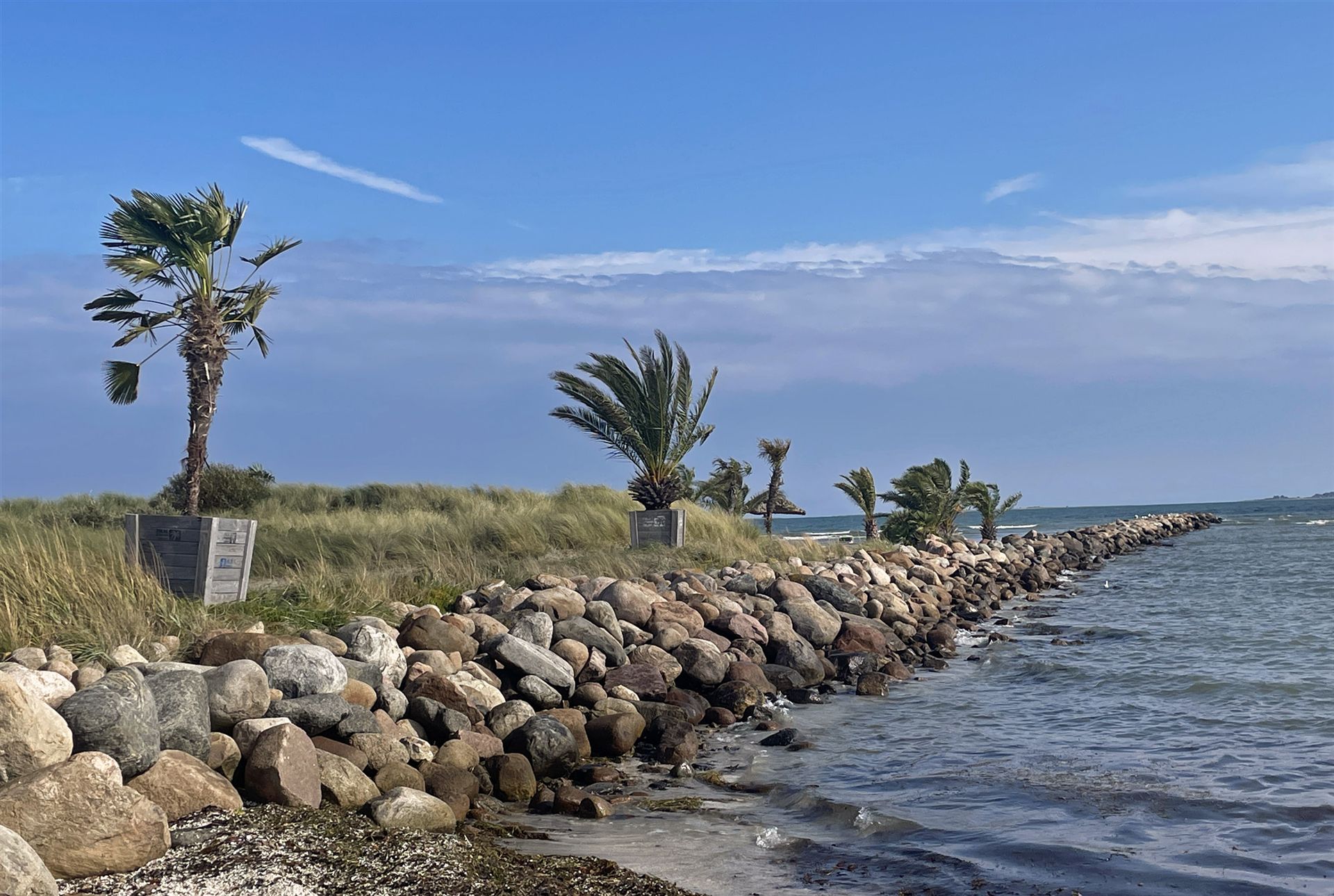 In der Nacht hat es stark geregnet. Am Morgen war es entsprechend grau. Im Laufe des Tages erschien aber wieder die Sonne. Heute wird ein Naturschutzzentrum besucht. Der erste Halt war in Frederikshavn. Frederikshavn bietet eine ganz besondere Atmosphäre, dank ihrer maritimen Geschichte, ihrer idyllischen Lage und nicht zuletzt der Fährverbindungen nach Schweden, Norwegen und Læsø. Eine der längsten Fußgängerzonen des Landes laden zum Shopping ein und die Natur bietet eine Fülle von Erlebnissen und Aktivitäten sowohl an Land als auch auf dem Meer. Wir haben zuerst etwas durch die Einkaufsläden spaziert und anschliessend Mittag gegessen. Nun fuhren wir zum nördlichsten Palmenstrand. Alles begann im Jahr 2004 mit 30 Palmen. Heute schmücken 100 davon den weißen Sand am exotischsten Strand Dänemarks. An einem Sommertag, an dem die Sonne von einem wolkenlosen Himmel scheint, bekommt man das Gefühl, man wäre in der Karibik. Aber es ist ganz einfach das Kattegat und Dänemark, von seiner aller schönsten Seite.