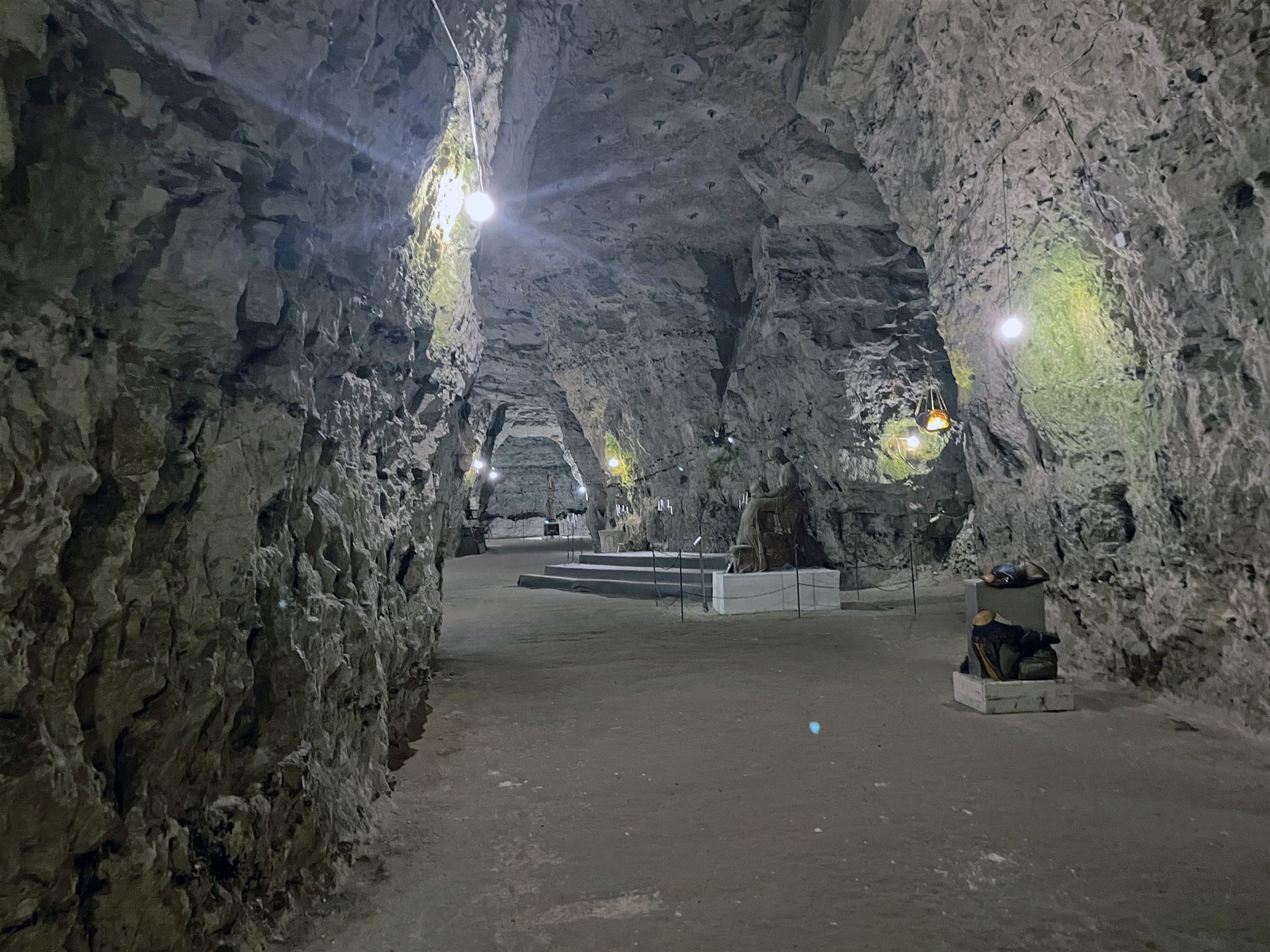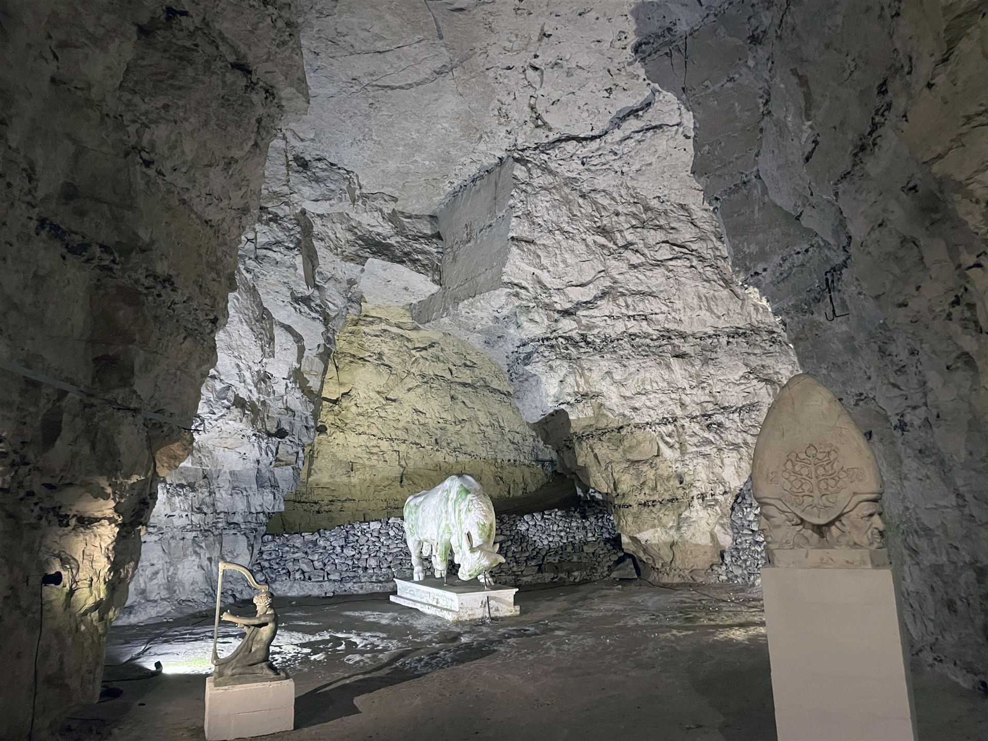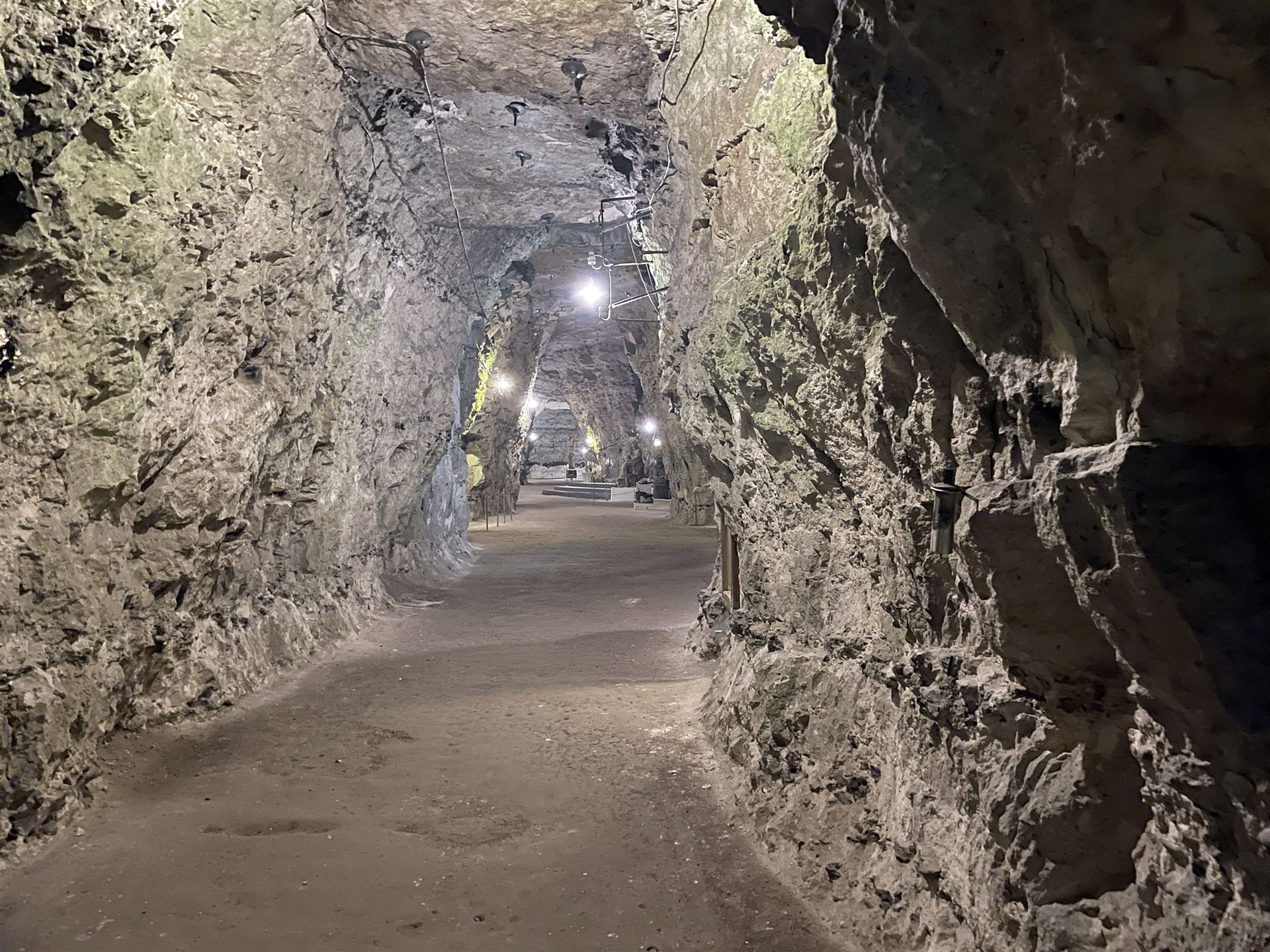 Seit 1935 sind die Thingbæk Kalkgruben für Besucher geöffnet. Mit der Einweihung eines neuen Willkommensgebäudes im Jahre 2015, ist das Angebot für die Gäste deutlich erweitert worden. Die Aussicht vom Eingang zu den Kalkgruben ist eine Sehenswürdigkeit für sich. Hier sehen Sie über Lindenborg Ådal hinaus, über Rold Skov und Rebild Bakker. Der Kontrast ist deswegen groß, wenn Sie das Tor zu den dunklen und kühlen Mienenpfaden betreten. Sie gehen direkt in den Untergrund Dänemarks rein wo Sie studieren können, wie das Land erschaffen wurde. Vor 60 Millionen Jahren haben mikroskopische Tiere ihre Skelette auf dem Grunde des warmen Urmeeres abgelagert. Die Ablagerungen wurden mit der Zeit zu dem Kalk zusammengepresst, der in Generationen von offenen Brüchen in Thingbæk entnommen und als Mörtel und zur Bodenverbesserung angewendet wurde. Die Höhle ist beeindruckend von der Höhe und der Weite. Sie ist zwar nur rund 200 m lang. In den Nebenhöhlen sind Kunstwerke ausgestellt. Mit einem Audioguide konnte man die Geschichte hören. So gar auf Deutsch