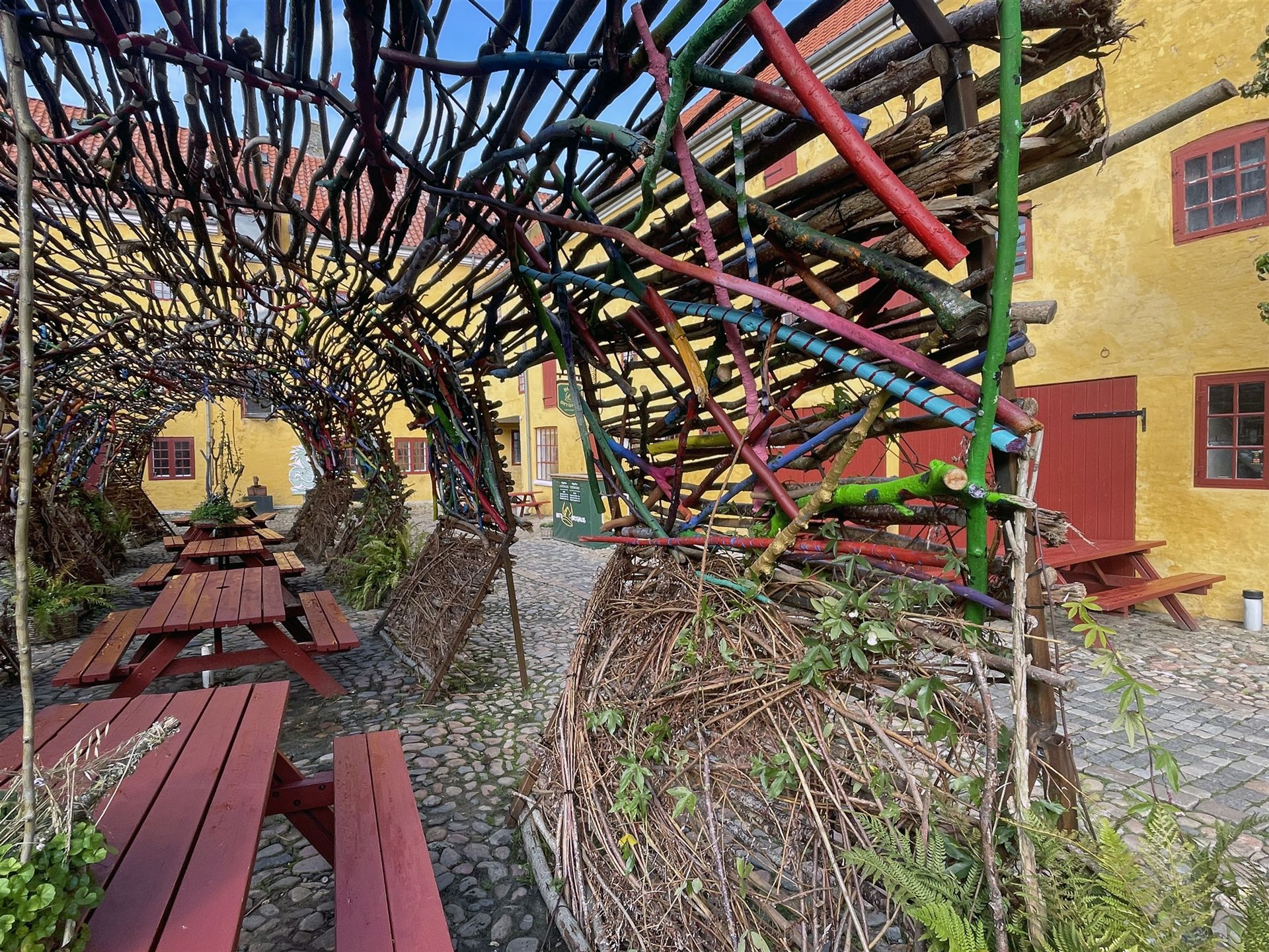 Der Spaziergang entlang der vielen kleinen Geschäfte war interessant. Der Blumenkünstler Johnny Haugaard und seine kreativen Freiwilligen haben 2025 das Haus übernommen und diesen Sommer mit Blumen, Völven und historischen Abenteuern richtig aufgedreht. Mitten in der Stadt kann man seine Installation bewundern.