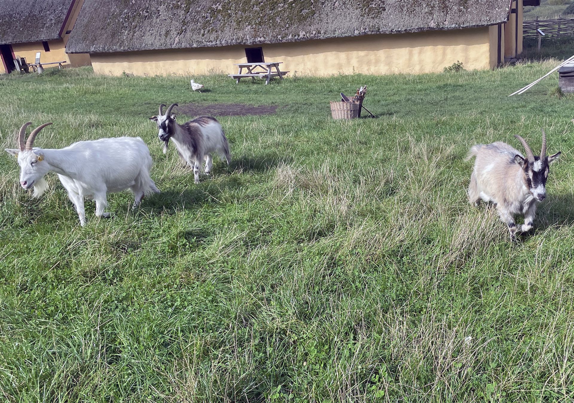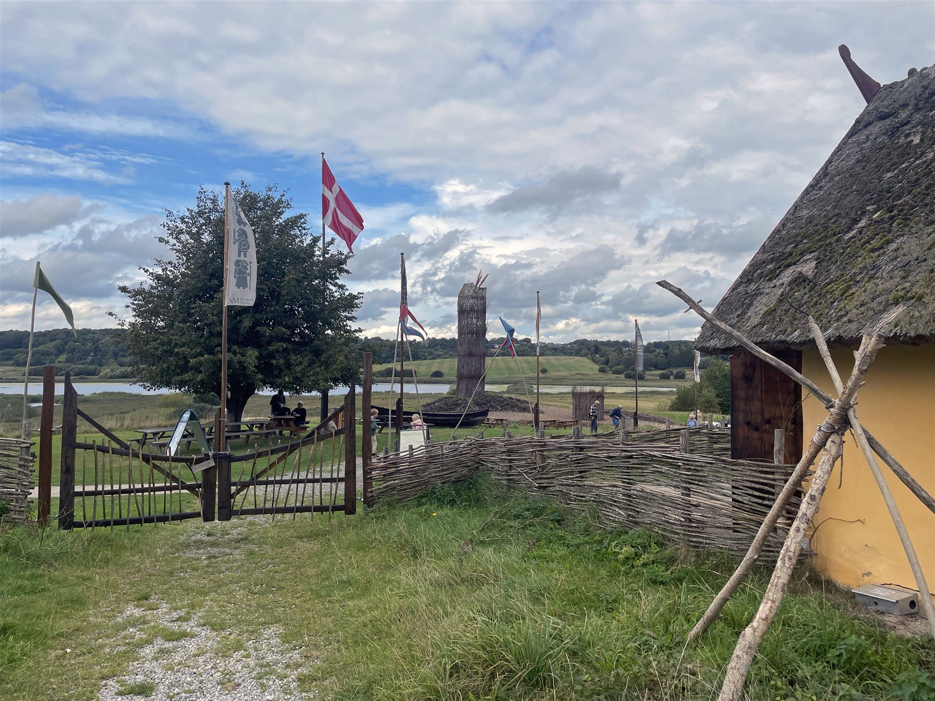 Wir gingen zum Wohnmobil zurück und fuhren weiter zum Fyrkat Wikingermuseum. Wir haben ja bereits einmal eines angeschaut. Da hier anscheinend Der Hauptort der Wikinger war besuchten wir trotzdem nochmals ein Museum, das wieder ganz anders sich zeigte. Die Wikingersiedlung, besteht aus neun rekonstruierten Häusern. Zusammen bilden diese einen Herrenhof, wie man ihn aus der Zeit von Harald Blauzahn kennt. Sowohl Wohnhäuser als auch Werkstätten, darunter die Schmiede, sind aus Eichenholz gebaut und mit lehmverputzten Wänden und Strohdächern errichtet. Die Stadt ist lebendig, da überall von "Vikinger" gezeigt wird wie die Menschen damals wohnten.