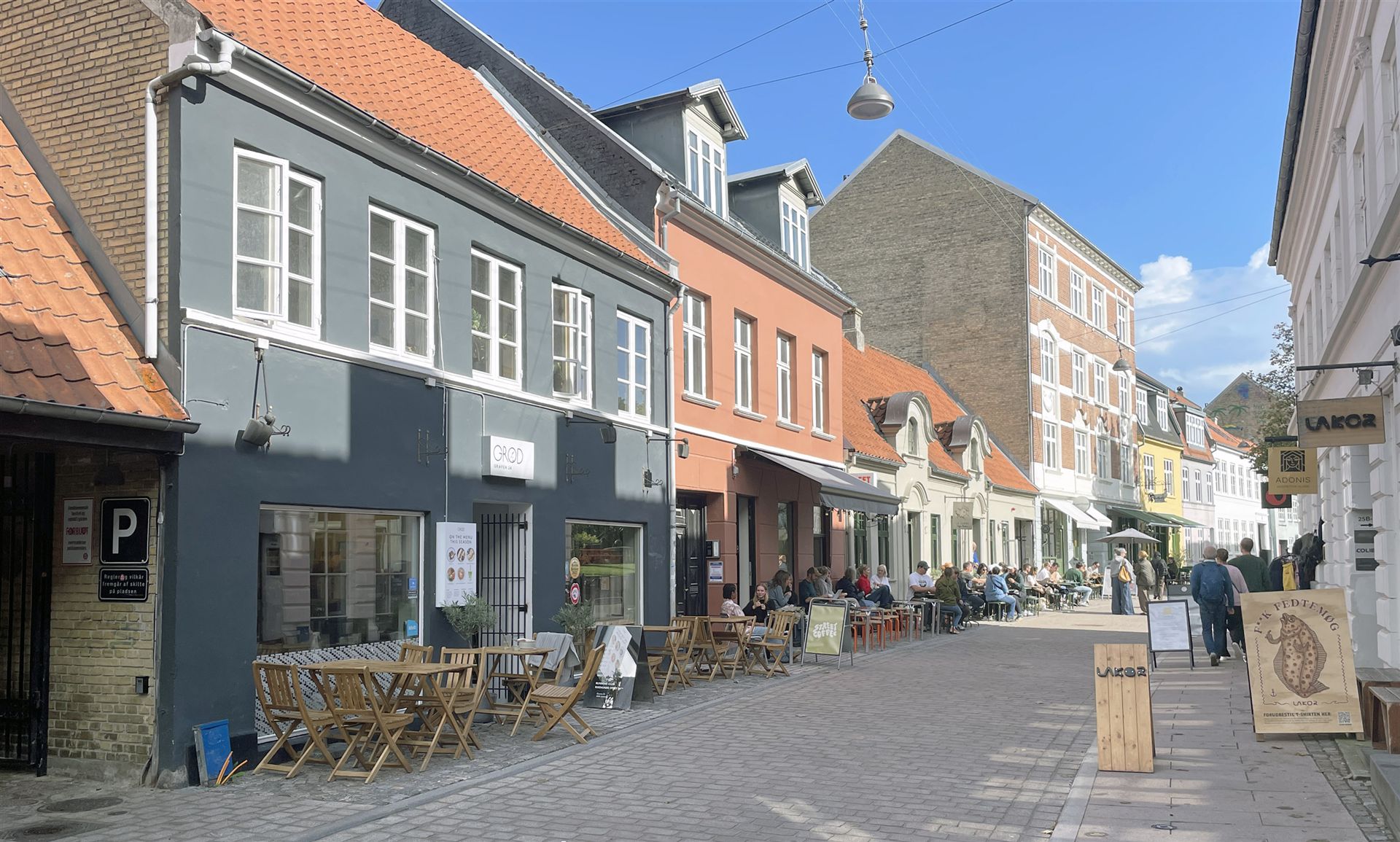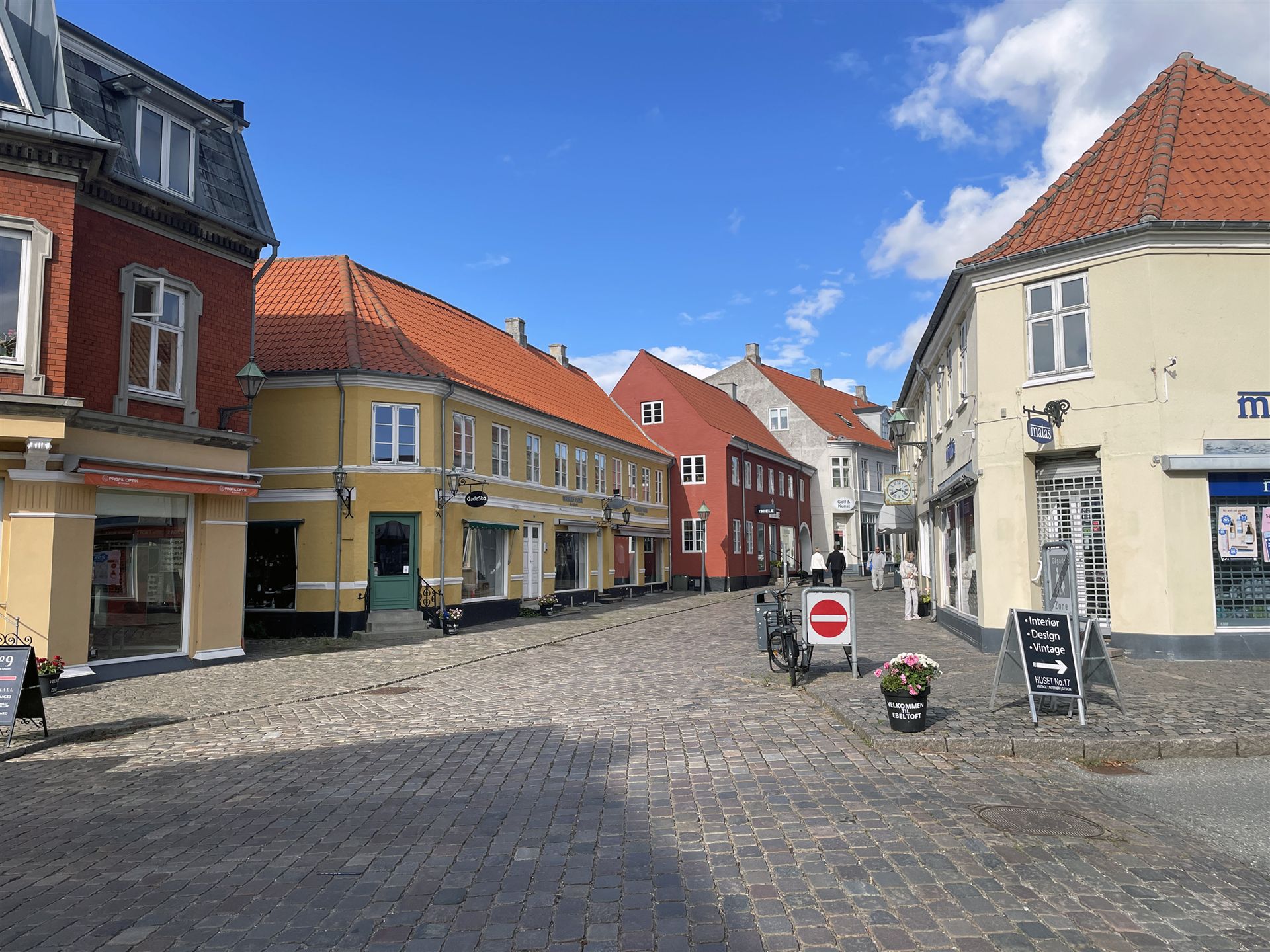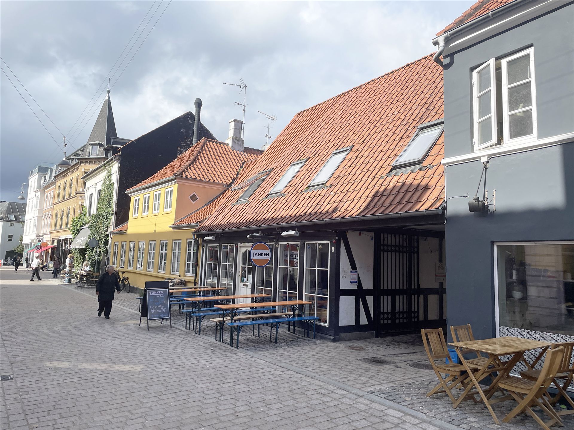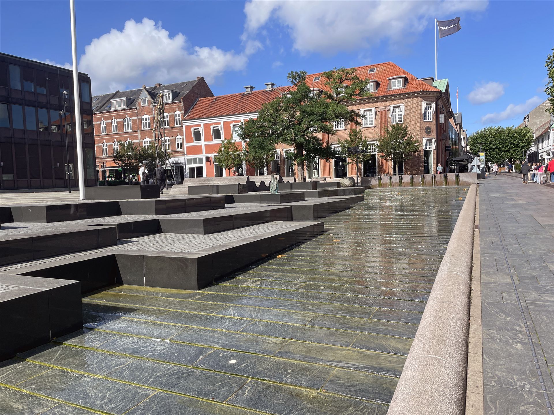 Der Umstand, dass Fredericia einst als Planstadt in Form einer Festung erschaffen wurde, hat sich nachhaltig auf das Stadtbild ausgewirkt. Dieser Plan ist auch heute noch auf beeindruckende Art und Weise zu bestaunen, denn die alten Straßen in Zentrumsnähe sind nahezu schnurgerade im Schachbrettmuster angelegt worden. Umgeben ist die Stadt zudem von einer sehr begrünten Wallanlage, welche zu den best -erhaltensten Nordeuropas zählt und zu ausführlichen Ausflügen einlädt. Wir besuchten die Fussgänger Zone. Die ganze Innenstadt hat viele kleine schmucke Geschäfte. Den Wegesrand säumen Tische und Stühle wo die Menschen sich verabreden, Kaffee Trinken und Plaudern obwohl ein starker Wind weht sitzen sie trotzdem im Freien. Für uns zu kalt, aber es gab trotzdem Kaffee und Kuchen aber im Innenraum. Es sind auch immer wieder wunderschöne restaurierte Häuser zu sehen.