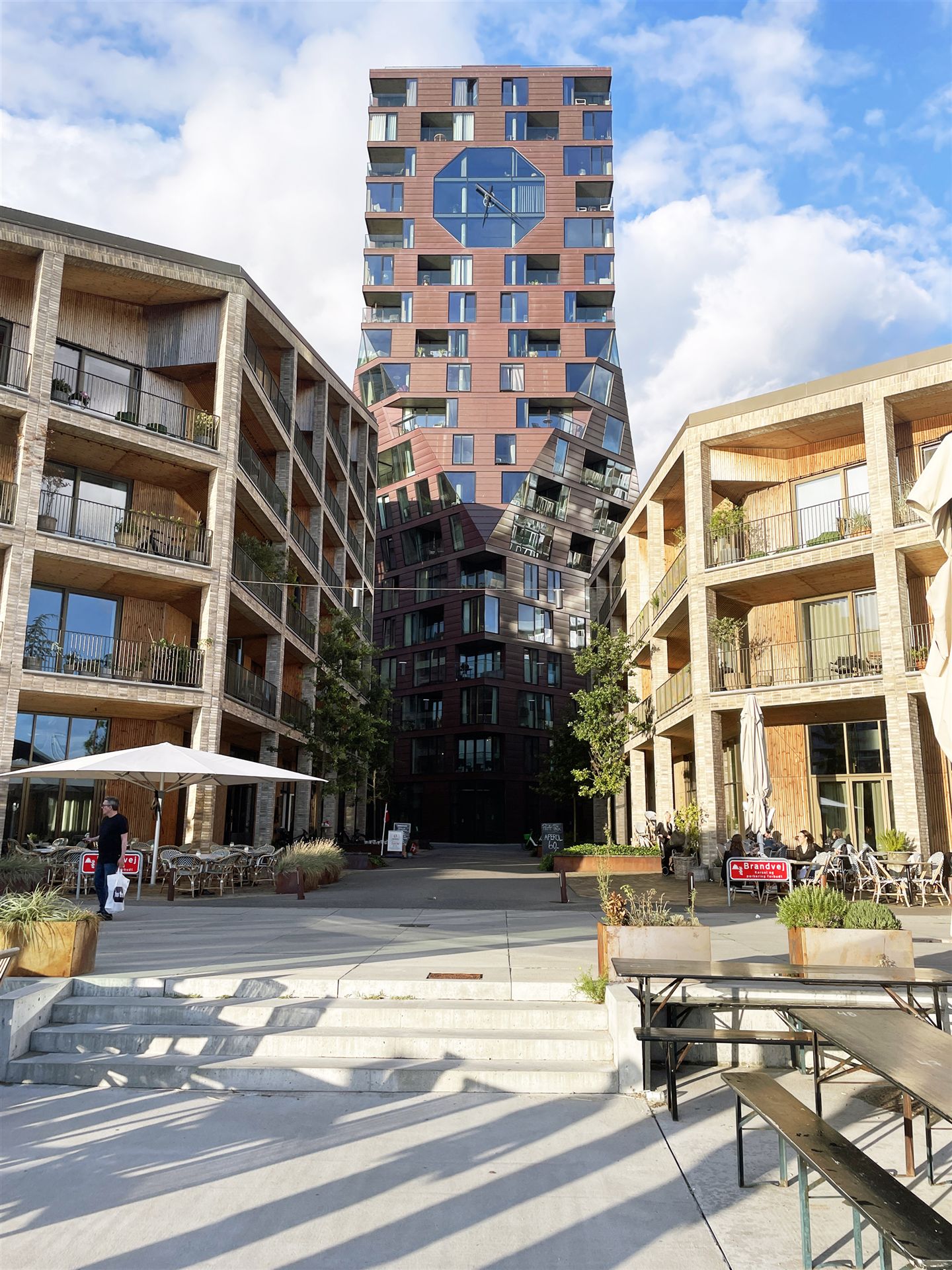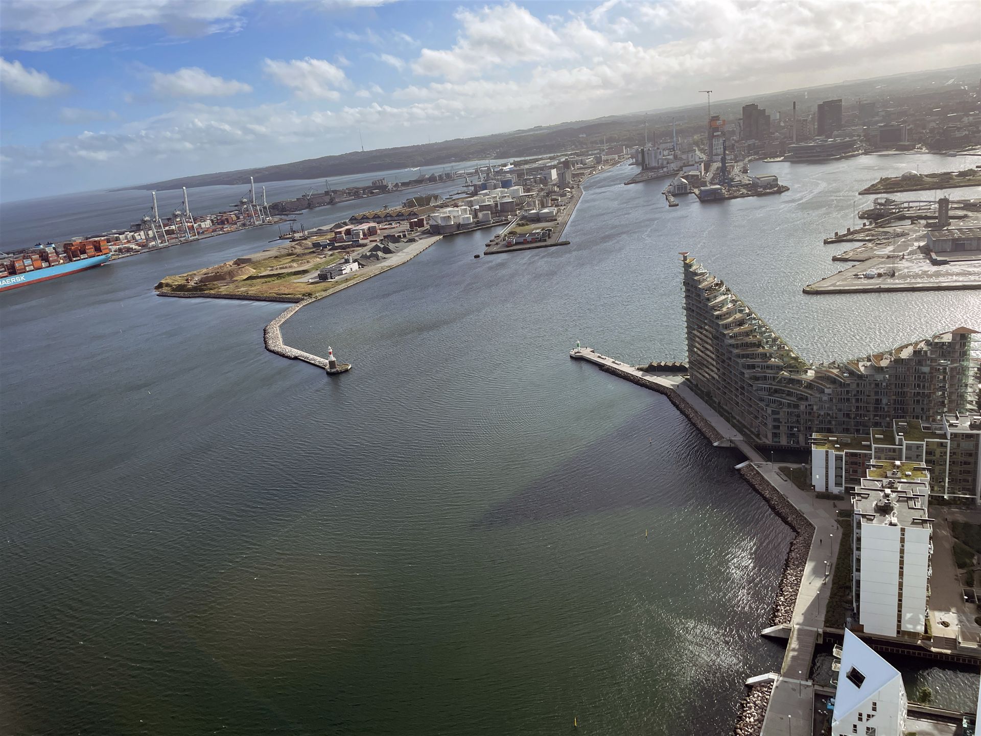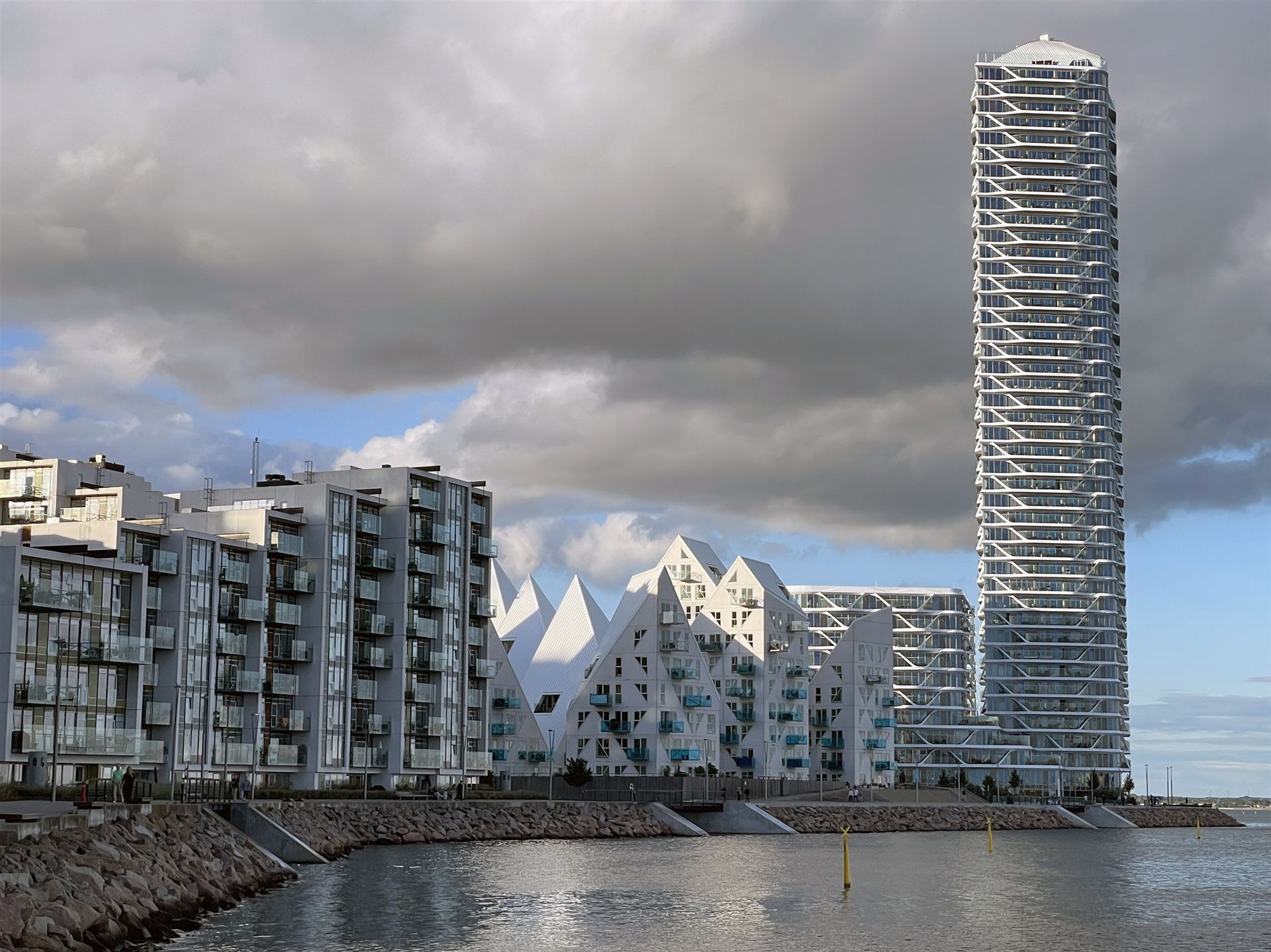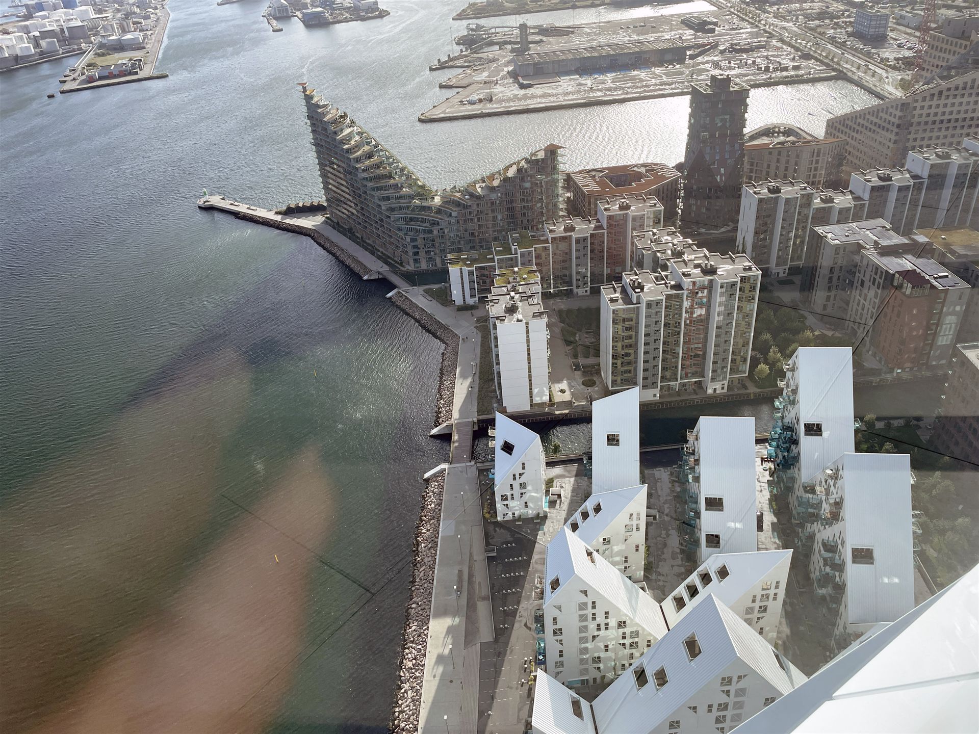 Am Himmel wurde es wieder verdächtig schwarz. Es war Zeit das trockene Wohnmobil aufzusuchen. Leider reichte es nicht ganz. Die letzten Meter wurden wir noch nass. Der Spuck war schnell wieder vorbei und die Sonne zeigte sich wieder. Wir spazierten nochmals durch die wunderschöne Neustadt am Hafen. Ich benutzte die Gelegenheit den höchsten Turm zu besichtigen wo man eine der atemberaubendsten Aussichten Dänemarks erleben kann. Man steigt in den Hochgeschwindigkeitsaufzug (Schindler) und ist in weniger als 30 Sekunden auf der Spitze des Aarhus Øje, 142 Meter über dem Boden. Im Lighthouse leben Jung und Alt, Kinder und Erwachsene Seite an Seite am Wasser. Fast die Hälfte des Gebäudes besteht aus Glas (46 %) und verfügt über beeindruckende 2.512 Türen. Das Bauwerk steht auf rund 1.700 Pfählen, darunter 28 Betonpfähle mit einer Tiefe von 70 Metern und einer massiven, 2 Meter dicken Betonplatte.