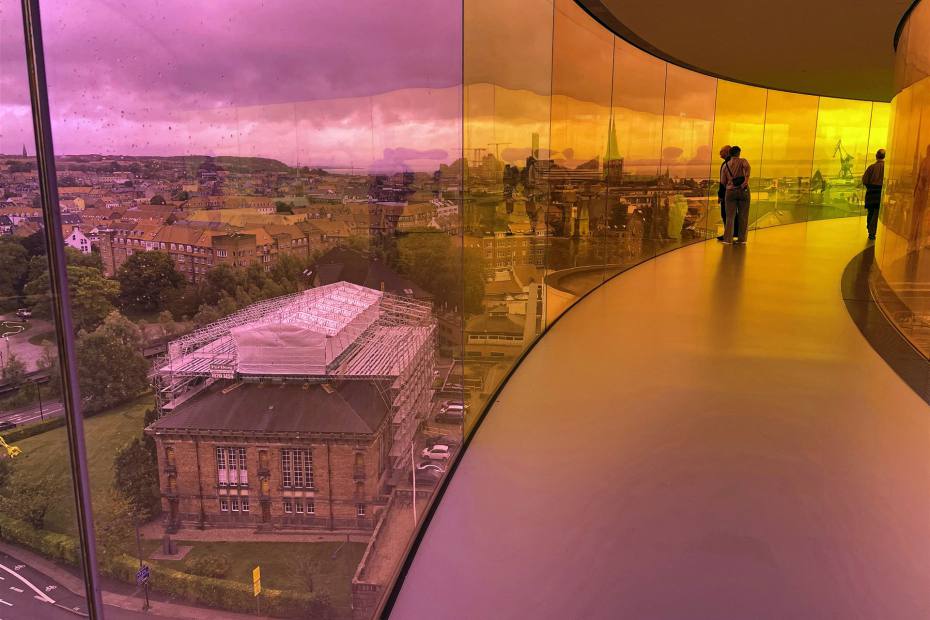 ARoS ist ein internationales Kunstmuseum im Zentrum von Aarhus, der zweitgrößten Stadt Dänemarks. Mit fünf Galerien und einer ganzen Etage, die der Installationskunst gewidmet ist, bietet ARoS einen wichtigen Freiraum, in dem es möglich ist, die Vergangenheit zu verstehen, die Gegenwart zu erforschen und sich die Zukunft auf völlig neue Weise vorzustellen.