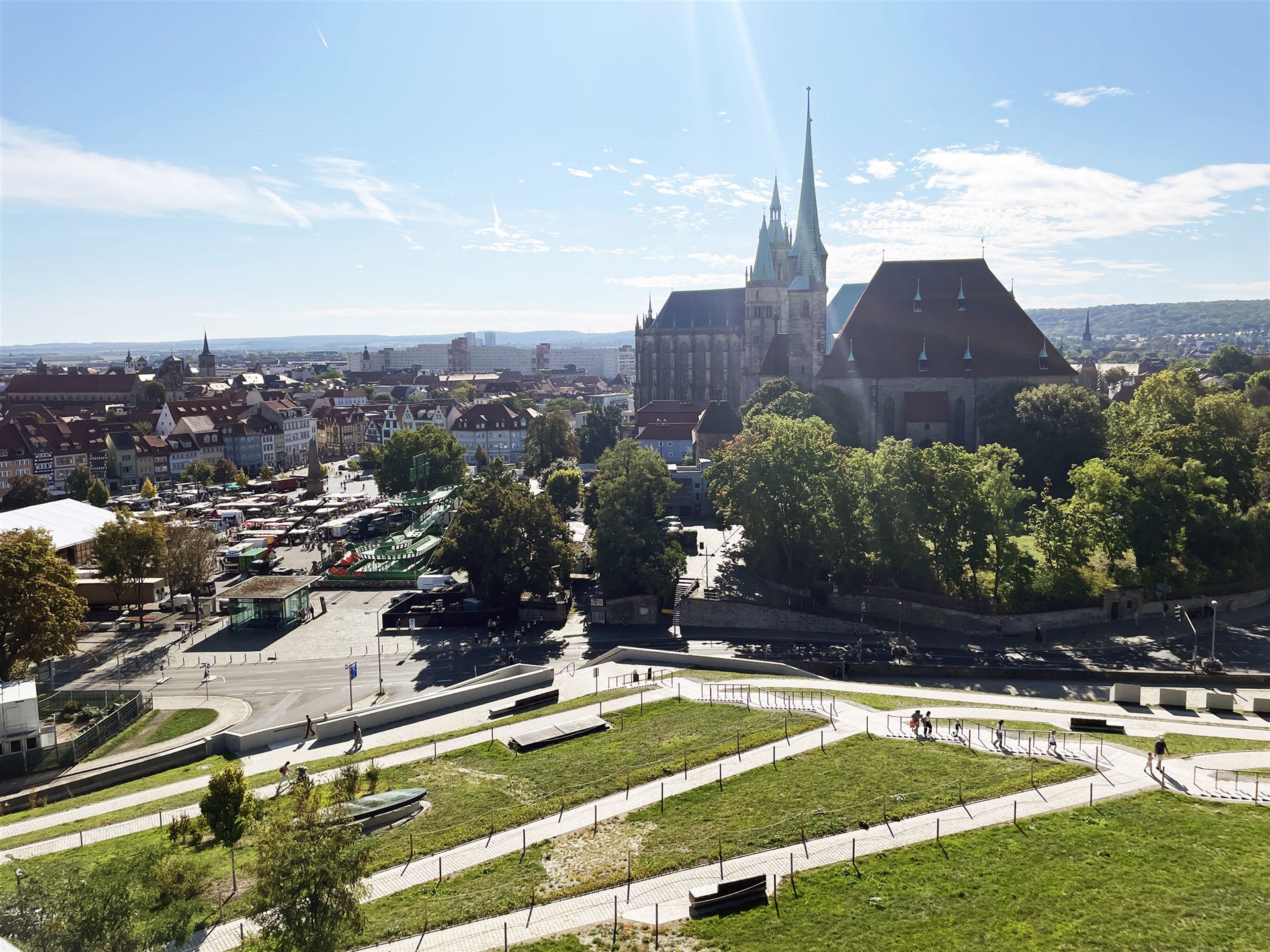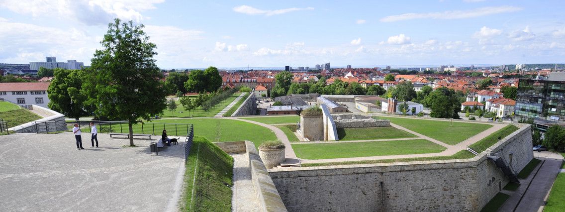 Über der Erfurter Altstadt erhebt sich die Zitadelle Petersberg – eine der größten und einzige weitgehend erhaltene barocke Stadtfestung Mitteleuropas. Sternenförmig angelegt, galt sie als die modernste Anlage der damaligen Zeit und als uneinnehmbar. Seit 1990 wird sie mit viel Liebe zum Detail und großem Aufwand rekonstruiert. Die erhöhte Lage und der sternförmige Aufbau der Zitadelle eröffnen mehrere Aussichtspunkte mit ausgedehnten Blicken über die Stadt.
