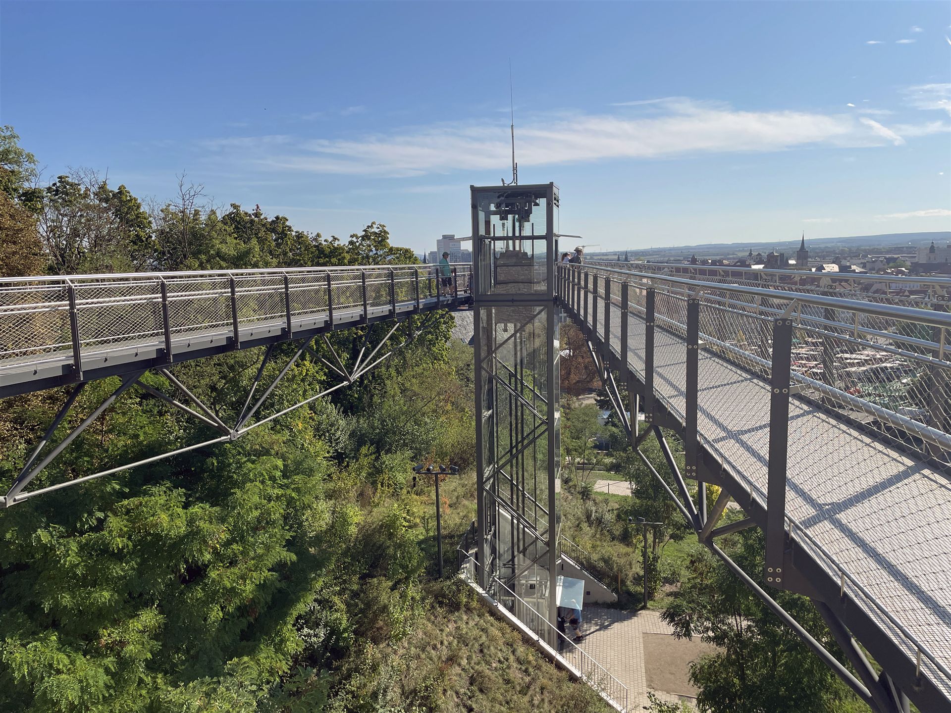 Damit möglichst viele Abschnitte der Zitadelle Petersberg allen Gästen zur Verfügung stehen, wurde der Zugang zum Festungsgelände neugestaltet. So erleichtert einem ein Personenaufzug an der Festungsmauer zum oberen Plateau den Aufstieg. Ansonsten müssten viele Treppen bis auf das Plateau überwindet werden.