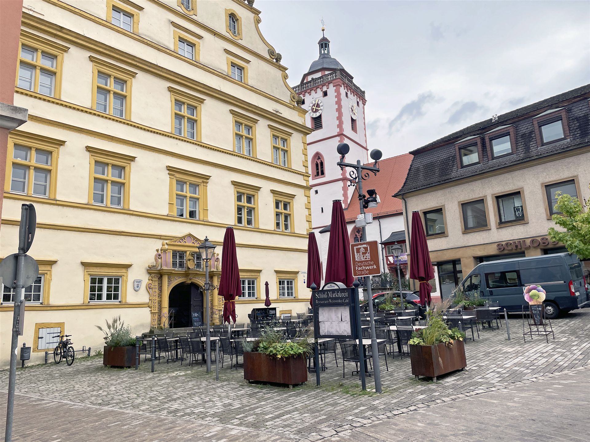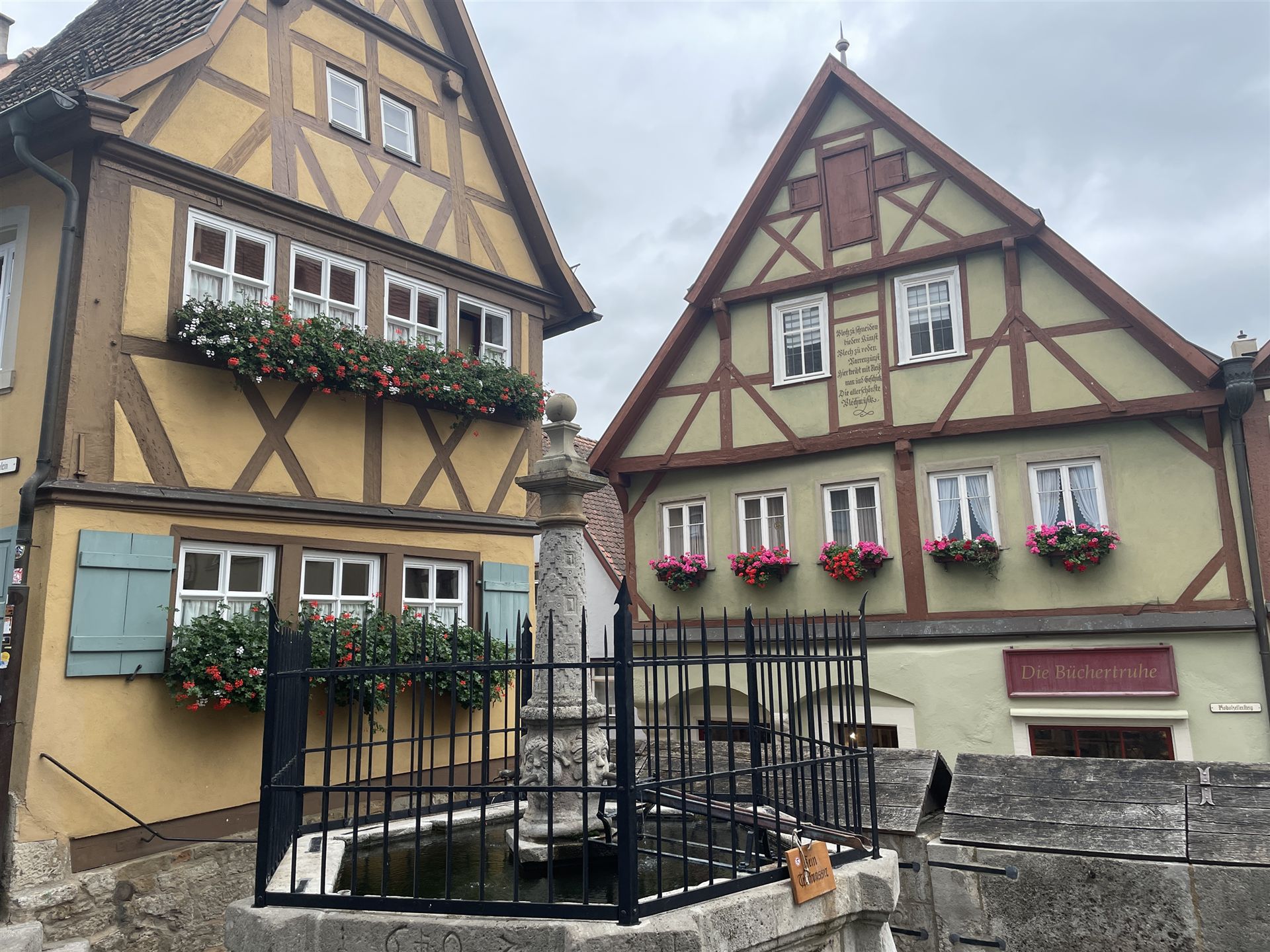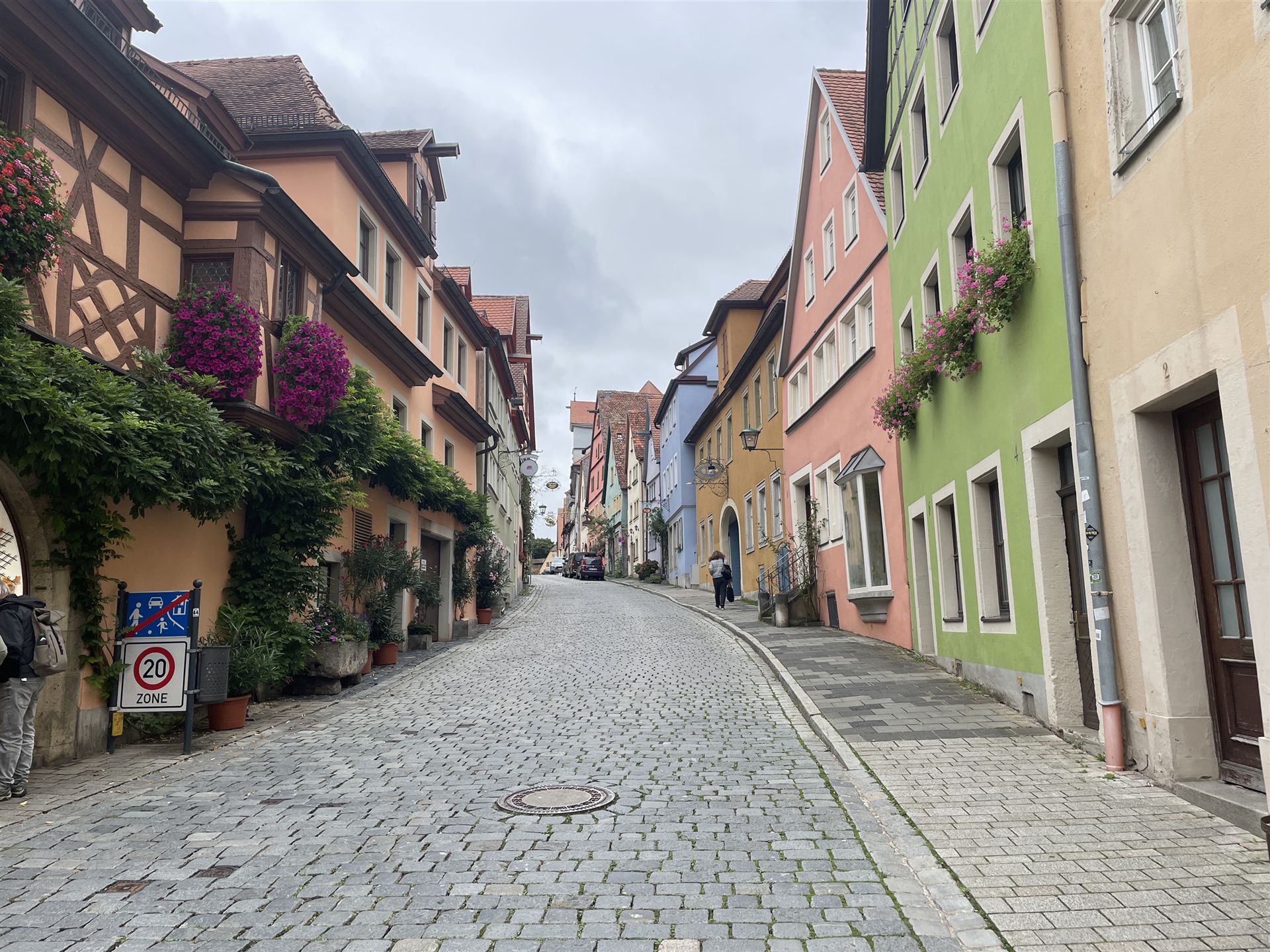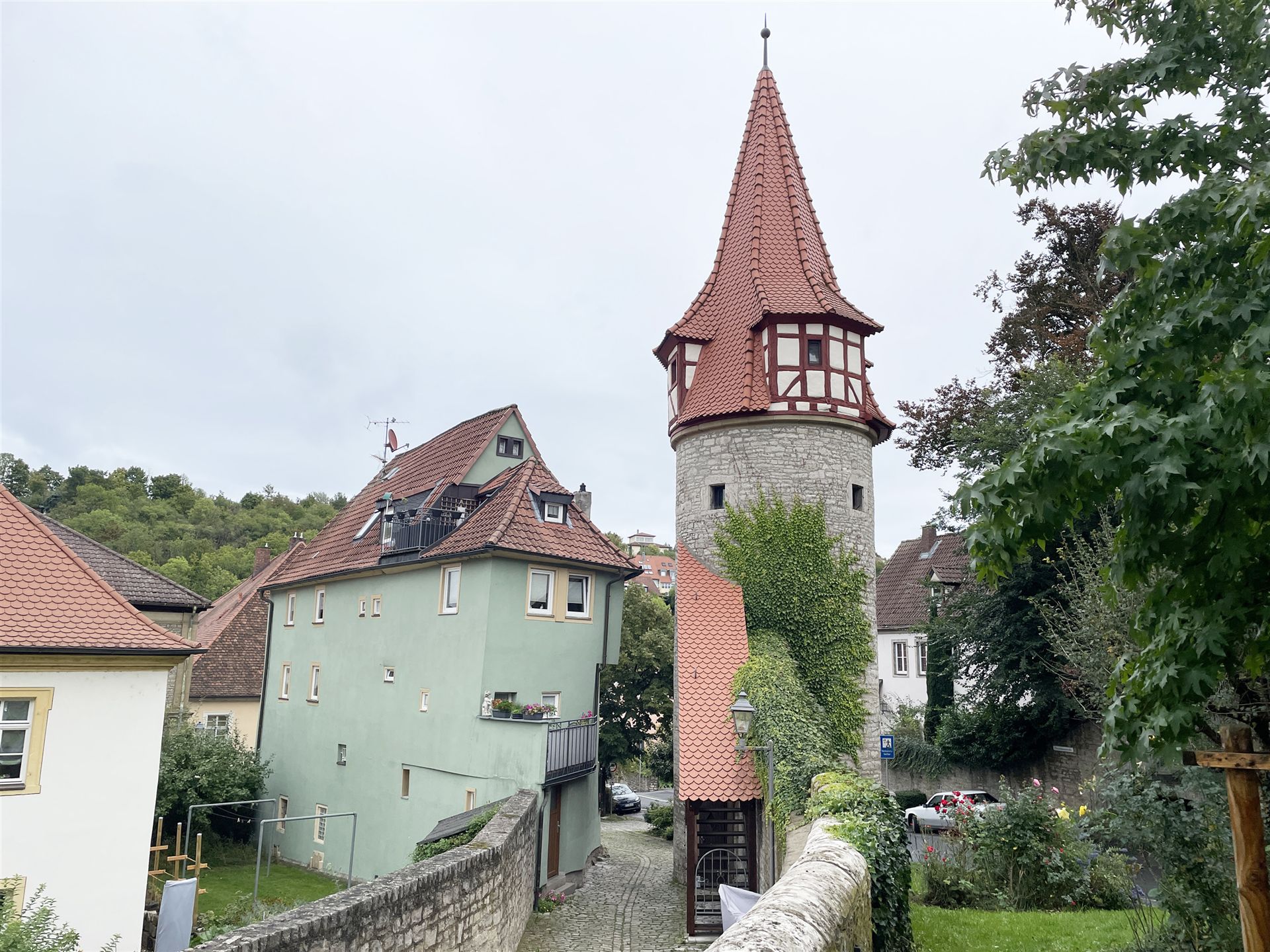 Unser Übernachtungsplatz lag schön oberhalb der Stadt. Wir haben desshalb und auch wegen dem Wetter entschieden nach Hause zu fahren. Unser erster Halt war in Hammelburg. Wir wollten dort Mittagessen. Aber das war ein recht schwieriges Unterfangen. Die meisten Restaurants waren geschlossen. Touristen waren Mangelware. Wir gaben das Städtchen auch schon anderes erlebt. Ein Restaurant war offen wegen Personalmangel aber mit einem sehr beschränkten Sortiment. Also nur kurzer Aufenthalt. Wir wollten noch in Rotheburg ob der Tauber Halt machen. Da sah alles schon anders aus. Trotz miesem Wetter war das Städtchen gut besucht. Es ist immer wieder ein Besuch wert. Dort fanden wir dann ein Restaurant. Von da aus ging es dann direkt nach Hause.