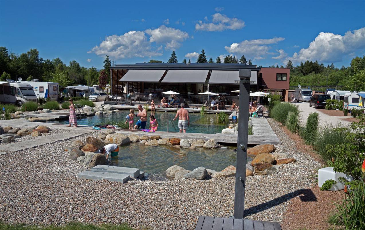 Nach der Rückkehr beendeten wir unsere gemeinsame Reise mit einem guten Mittagessen im Campingrestaurant. Bei schönstem Wetter sassen wir auf der gedeckten Terrasse mit Blick auf den Schwimmteich. Heute endet unsere gemeinsame Reise ins Südtirol. Wir haben 8 wunderschöne Tage erleben dürfen. Nelly und Rolf ziehen noch eine Woche weiter, wir müssen wegen Terminen (Rentner ??) nach Hause. Eine Versprechen haben wir noch eingelöst. Zwischen zwei Gewittern sind wir noch Baden gegangen im wunderschönen Naturteich.
