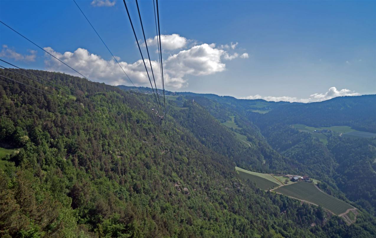 So ist die Rittner Seilbahn der Südtiroler Firma Leitner ein Vorzeige-Verkehrsmittel von Weltklasse und vereint mit drei Seilen (zwei Tragseile, ein Zugseil) die Vorteile von Pendelbahn und kuppelbarer Umlaufbahn. Das doppelte Tragseil erreicht eine hohe Windstabilität, die geräumigen Kabinen bieten Platz für 30 Personen. Mit einem Einsatz von acht Kabinen ist der vielgepriesene Vier-Minutentakt möglich, ein Fahrplan wird dadurch überflüssig. Je nach Bedarf kann die Frequenz der Gondelfahrten verringert und somit Energie eingespart werden. In Corona Zeiten werden nur 17 Personen pro Gondel transportiert. In rund 20 Minuten erreicht man den Ort Oberbozen. Auf der Fahrt hat man eine herrliche Aussicht auf das Tal und in die schneebedeckten Berge.