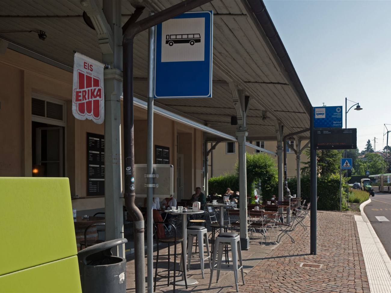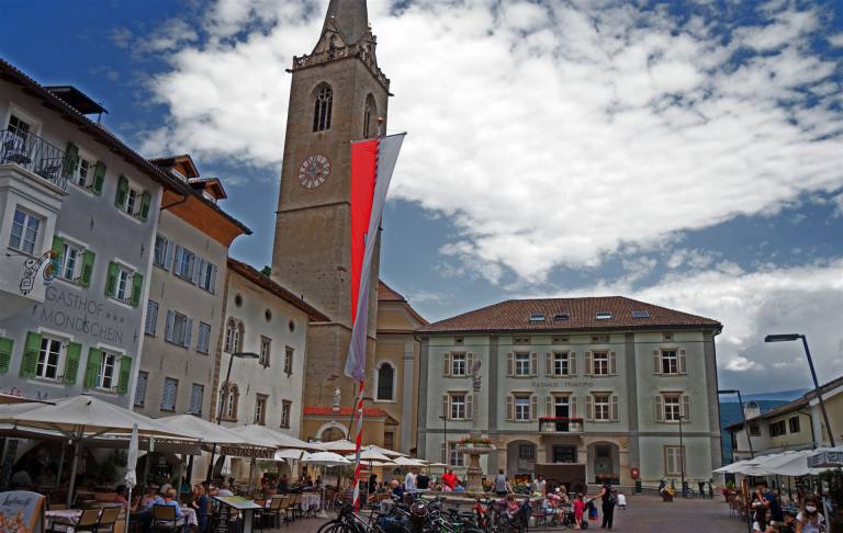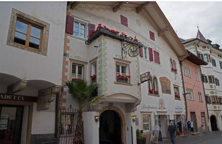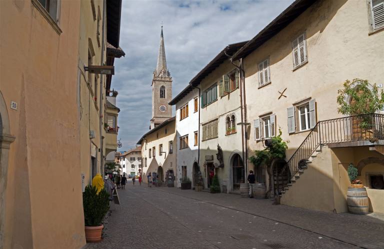 Am Morgen nach dem Frühstück mussten Nelly und Rolf forfait geben. Nelly hatte gesundheitliche Probleme und brauchte einige Stunden Ruhe. Also machten wir uns alleine auf den Weg. Zuerst brachte uns die Campingplatz Besitzerin mit dem PW zur Busstation. Leider ist die Station vor dem Campingplatz erst nächste Woche in Betrieb. (Corona) Wir besuchten zuerst von das Dorf Eppan an der Weinstraße. Es ist eine italienische Großgemeinde mit 14.932 Einwohnern in Südtirol. Eppan ist die sechstgrößte Gemeinde Südtirols und mit einer Kleinstadt vergleichbar. Eppan liegt an der Südtiroler Weinstraße im Überetsch zwischen Bozen und Kaltern. Der Alte Stadtteil hat sehr schöne Häuser und auch eine nette verkehrsfreie Einkaufsstrasse. Wir schlenderten rund eine Stunde umher und begaben uns darnach zur Bushaltestelle Eppan Bahnhof. Aber wo ist der Zug ?? Es gibt schon lange keine Eisenbahn mehr auf dieser Strecke. Der Bahnhof ist aber nach wie vor vorhanden und beinhaltet ein Restaurant und ist auch gleich Busstation.