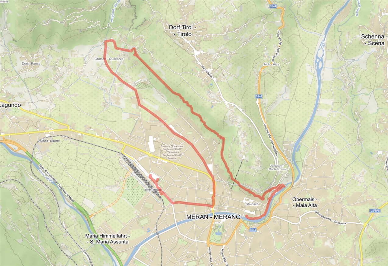 Erdacht und gestiftet vom Kurarzt Dr. Tappeiner verläuft der Tappeinerweg bereits seit 150 Jahren über Merans Dächern und hat trotz seines Alters nichts an Beliebtheit eingebüßt- im Gegenteil! Der Weg ist sehr gut gepflegt und die Pflanzen werden bewässert. Zu jeder Tages- und Jahreszeit ist der Tappeinerweg der richtige Ort, um sich vom Alltagsstress zu erholen, während einige Schritte in der klaren Meraner Luft das beste Mittel sind, deine Batterien wieder aufzuladen- Ganz im Sinne des Kurgedankens von Dr. Tappeiner! Über 400 verschiedene Pflanzen säumen diesen vom berühmten Meraner Kurarzt gestifteten Spazierweg auf seiner Route vom Küchelberg bis nach Gratsch. Am Beginn des Tappeinerweges befindet sich der Pulverturm, sowie der öffentliche Kräutergarten. Der Weg ist rund 3 km lang. Nicht weit vom Anfang des Weges gibt es ein gutes Restaurant, was wir dann auch nutzten um zu Essen